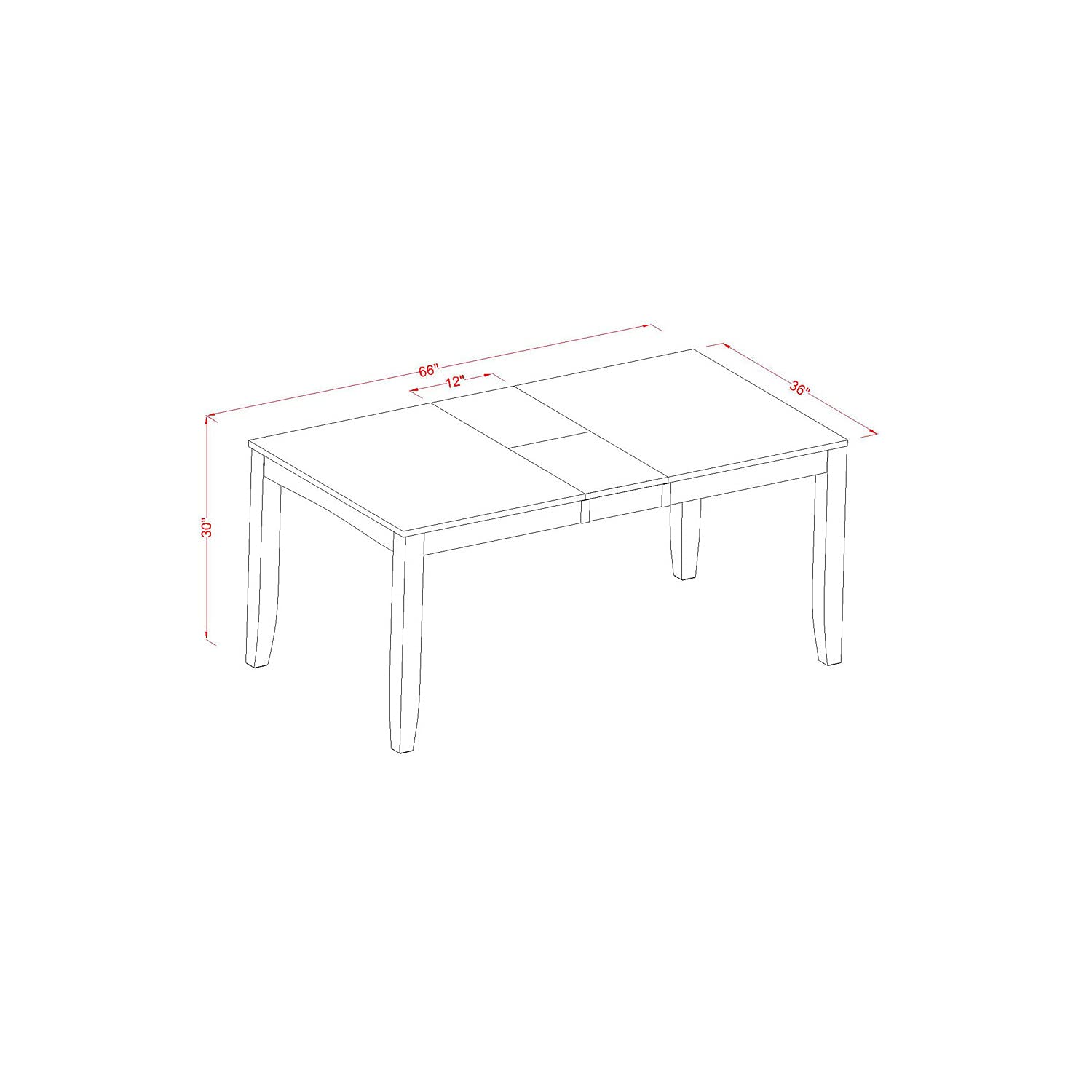 - The Kitchen Table Dimension: Length: 66/54; Width: 36; Height: 30. The Dimension of the Dining Chair: Length: 22; Width: 18; Height: 36.