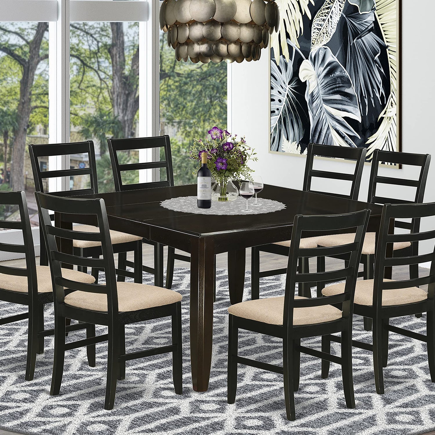 East West Furniture PARF9-CAP-C 9 Piece Dining Table Set Includes a Square Dining Room Table with Butterfly Leaf and 8 Linen Fabric Upholstered Chairs, 54x54 Inch, Cappuccino