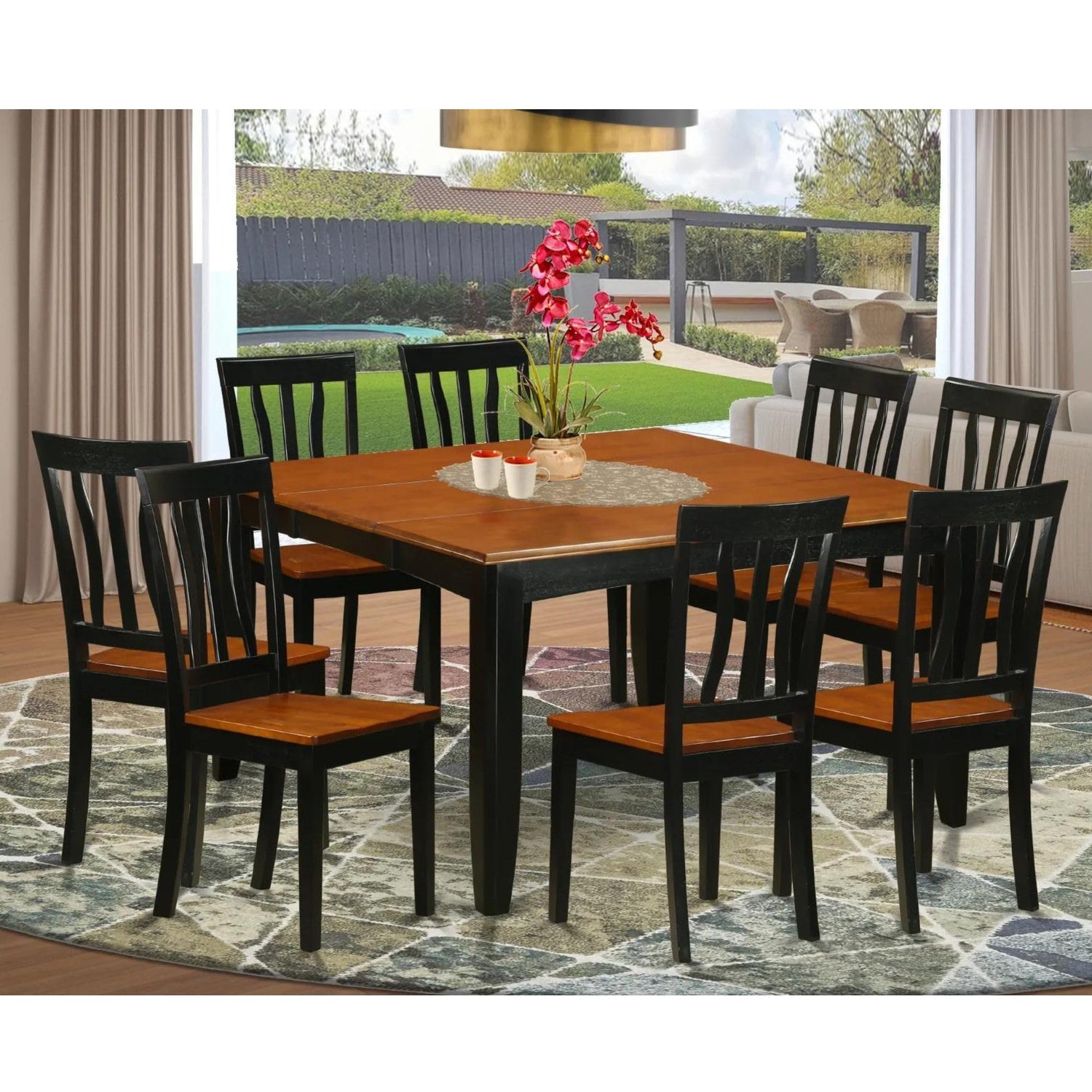 East West Furniture PFAN9-BCH-W 9 Piece Dining Set Includes a Square Dining Table with Butterfly Leaf and 8 Kitchen Chairs, 54x54 Inch, Black & Cherry