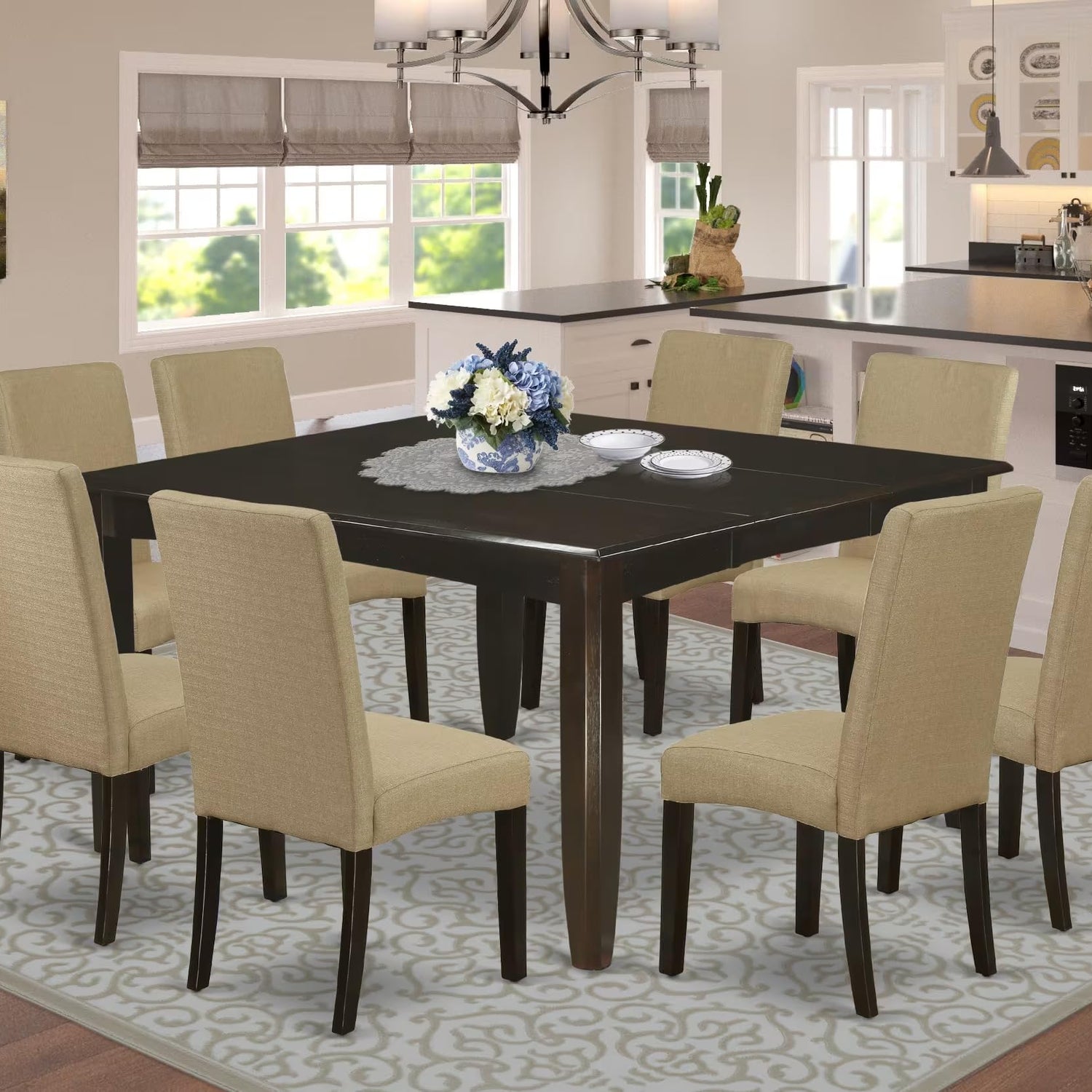 East West Furniture PFDR9-CAP-03 9 Piece Dining Set Includes a Square Dining Room Table with Butterfly Leaf and 8 Brown Linen Fabric Upholstered Parson Chairs, 54x54 Inch, Cappuccino