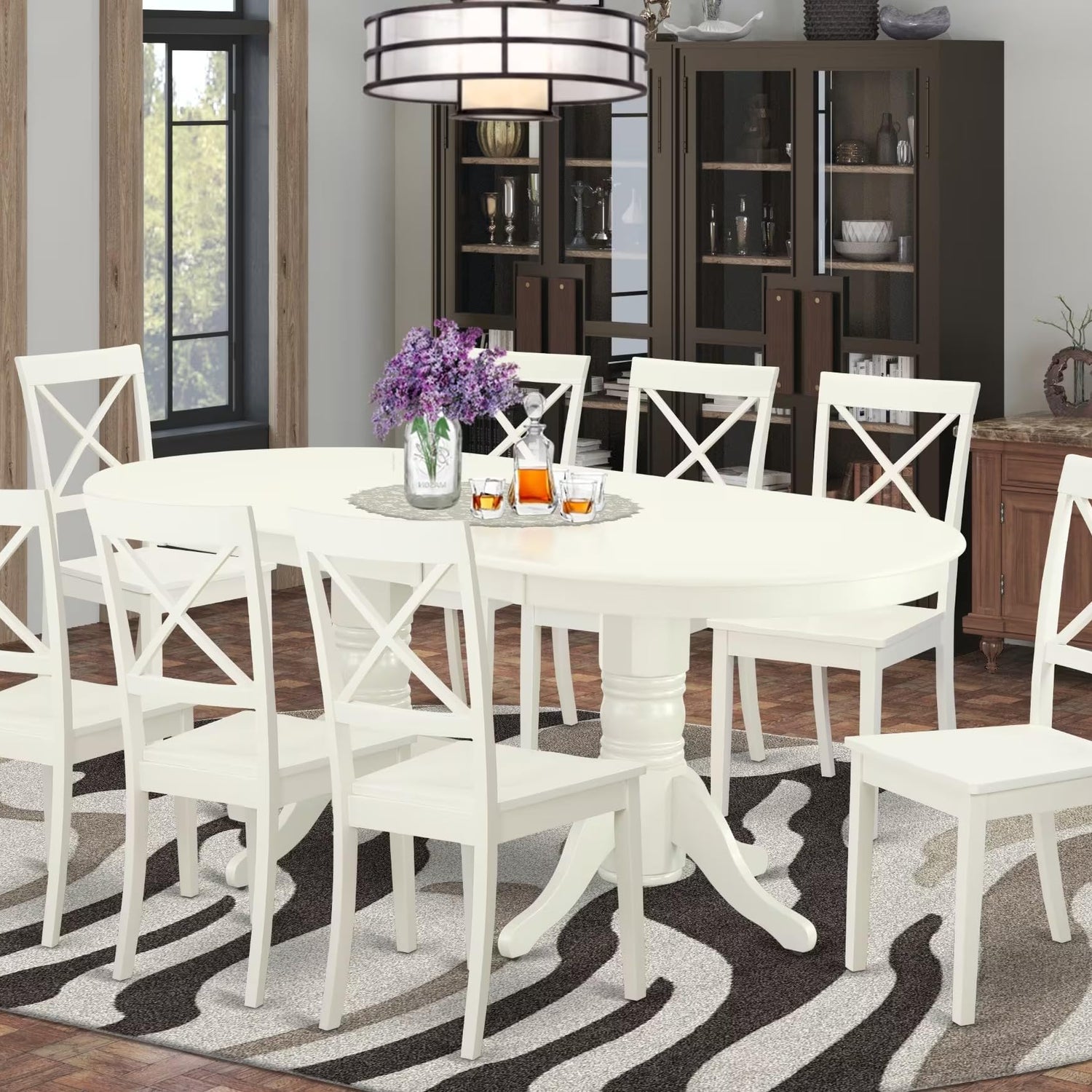 East West Furniture VABO9-LWH-W 9 Piece Modern Dining Table Set Includes an Oval Wooden Table with Butterfly Leaf and 8 Kitchen Dining Chairs, 40x76 Inch, Linen White
