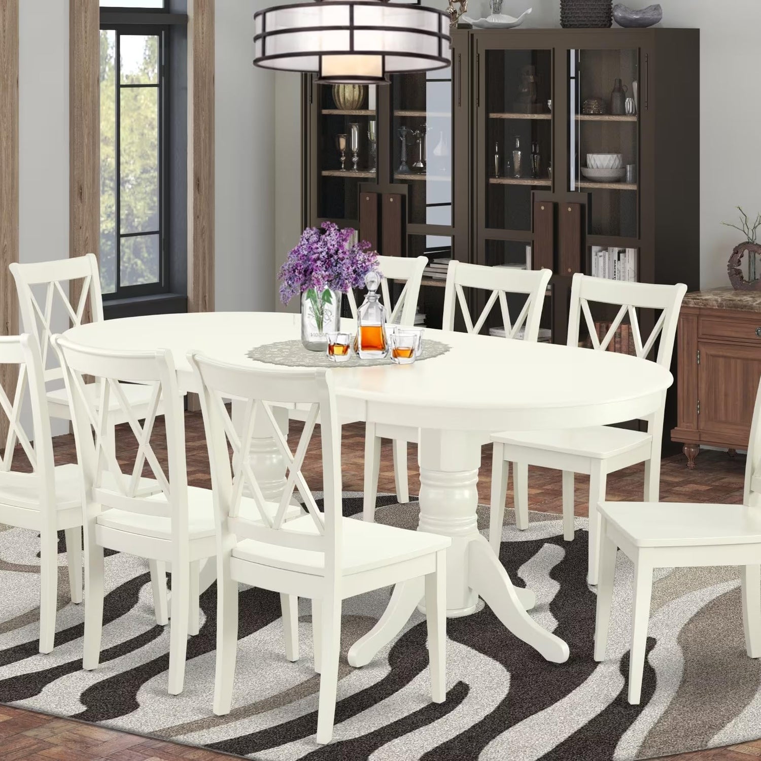 East West Furniture VACL9-LWH-W 9 Piece Dining Table Set Includes an Oval Dining Room Table with Butterfly Leaf and 8 Wood Seat Chairs, 40x76 Inch, Linen White