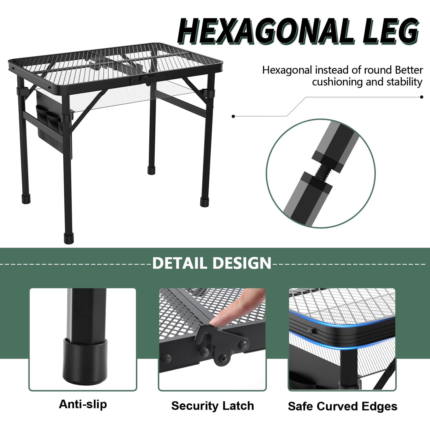 - Waterproof and Fireproof: Built to withstand the elements, our folding grill table is both waterproof and fireproof, allowing you to use it with confidence near water sources or with high-temperature equipment such as grills. Plus, this camping table easy to clean with a simple rinse.