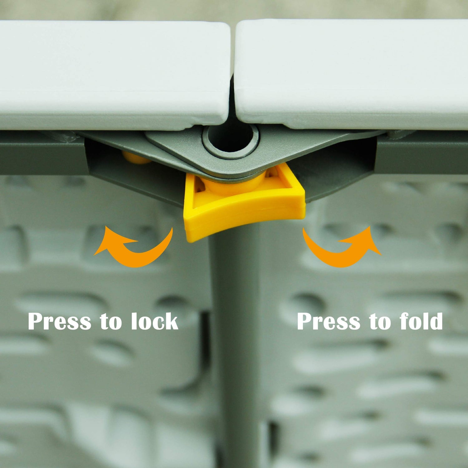 - Light-weight and fold in half design with carry handle makes this table easy to move and store almost anywhere, perfect for parties, picnics or camping.