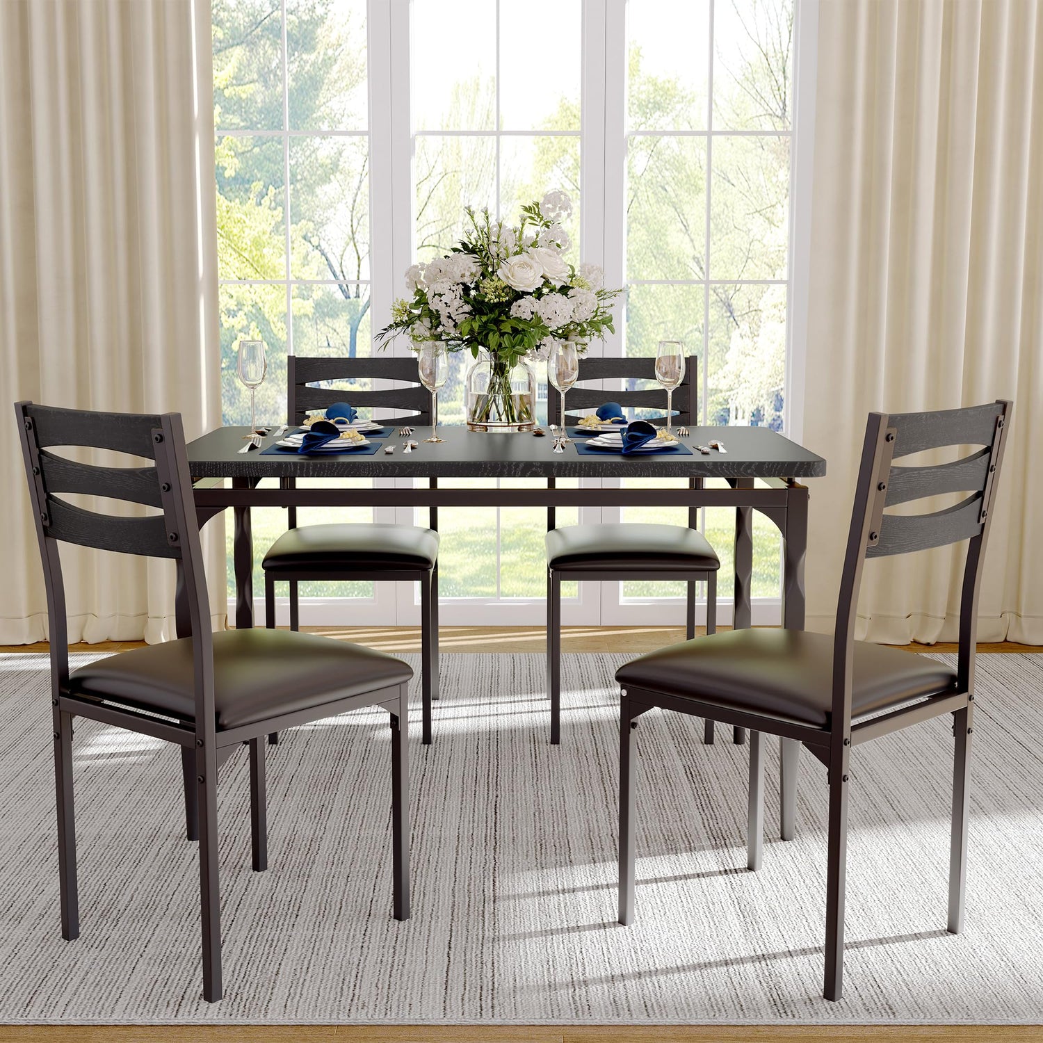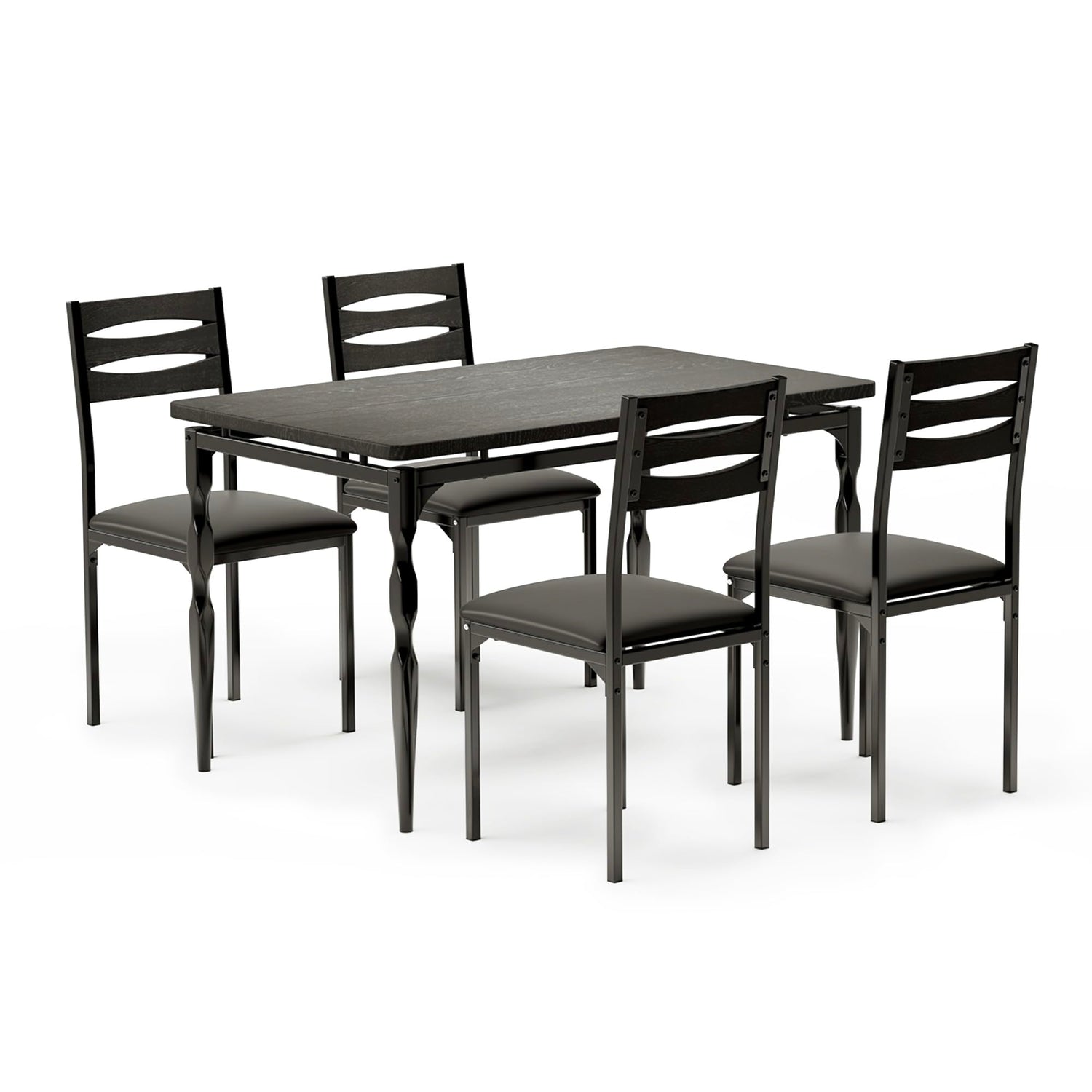 GarveeHome 5 Piece Dining Table Set, Industrial Style Dining Table and Chairs Set for 4, Kitchen Table Set for Dining Room Kitchen Apartment, Black