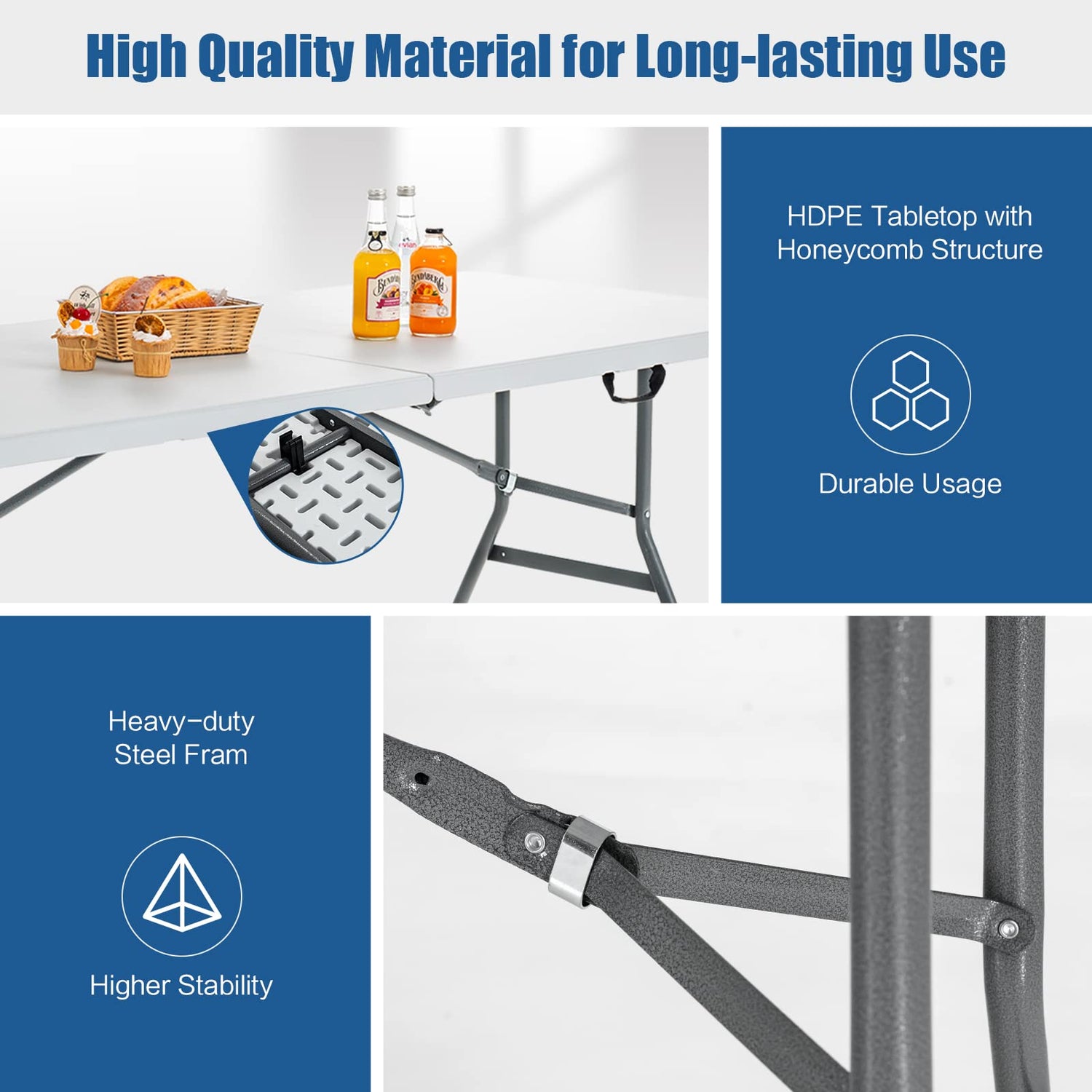 Goplus 6ft Folding Table, Indoor Outdoor Foldable Plastic Folding Tables, Heavy-Duty Rectangular Fold Up Table w/Handle, Portable Utility Card Table for Picnic, Party, Dining, Camping, Beach, White