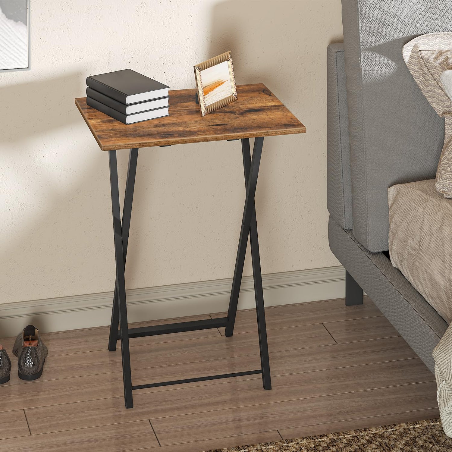 HOOBRO Folding TV Tray Tables, Set of 2 Side Table for Small Space, Industrial Snack Tables for Eating at Couch, Stable Metal Frame, Easy Assembly, Space Saving, Rustic Brown and Black BF25BZ01