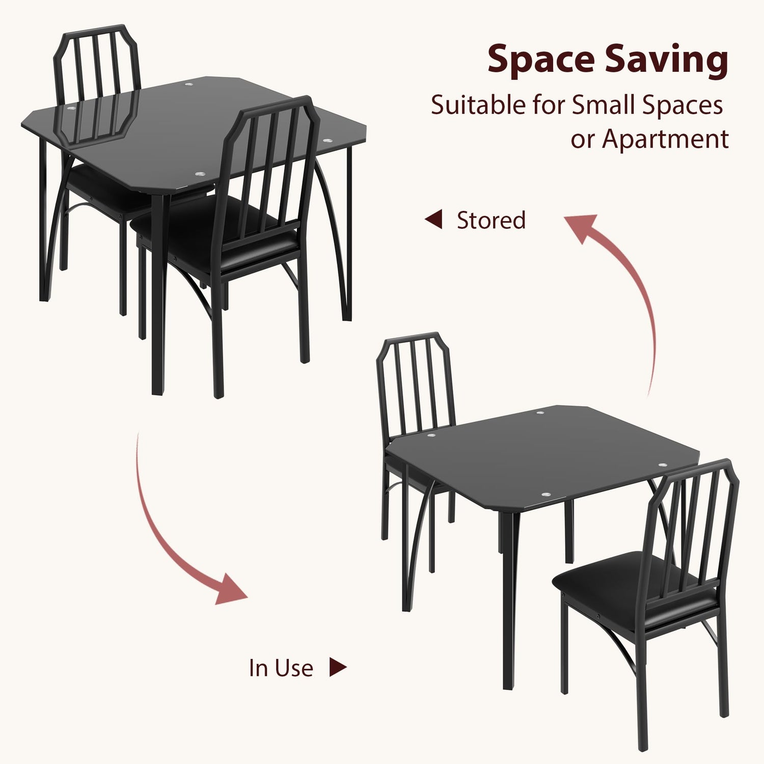 IDEALHOUSE Dining Table Set for 2, Kitchen Table Chairs Set of 2 with Ultra Comfortable PU Cushion, Dining Room Table Set for 2 Furniture with Kitchen Chairs Suitable for Small Space - Black Glass