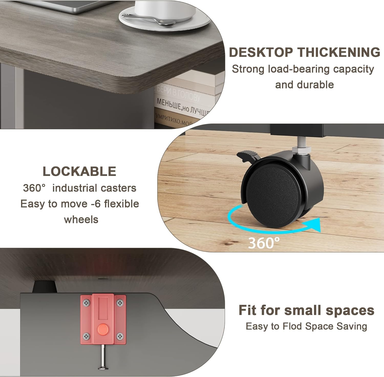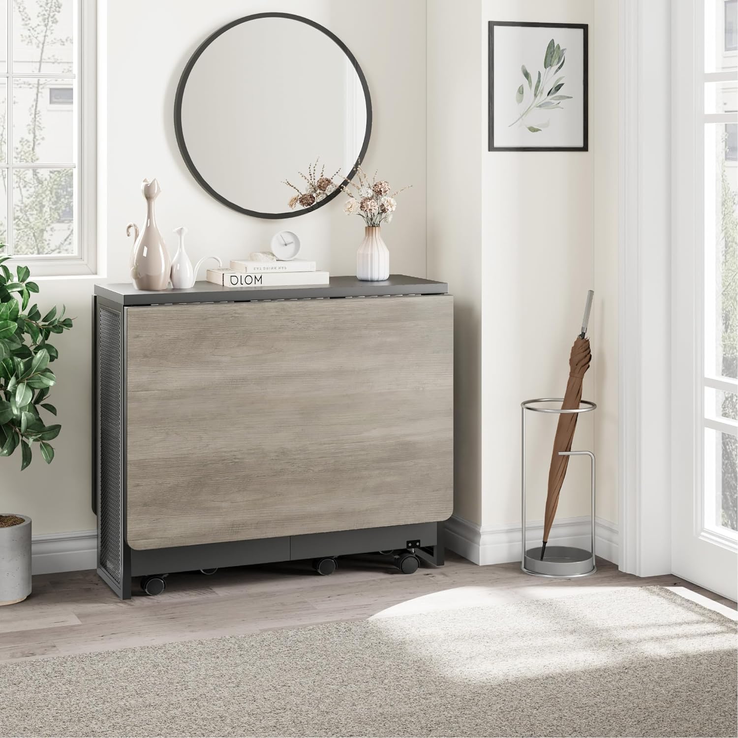 IDEALHOUSE Folding Dining Table, Drop Leaf Dining Table with 6 Wheels and 2-Layer Storage Shelf, Space Saving Dining Table for Small Spaces (Carlo Grey, 50.1" D x 31.4" W x 29.5" H)