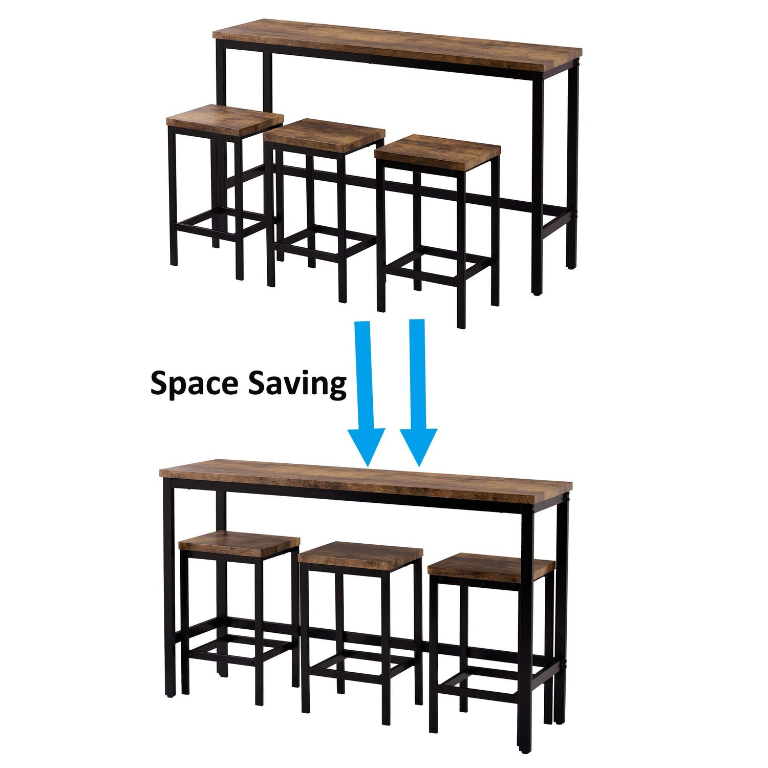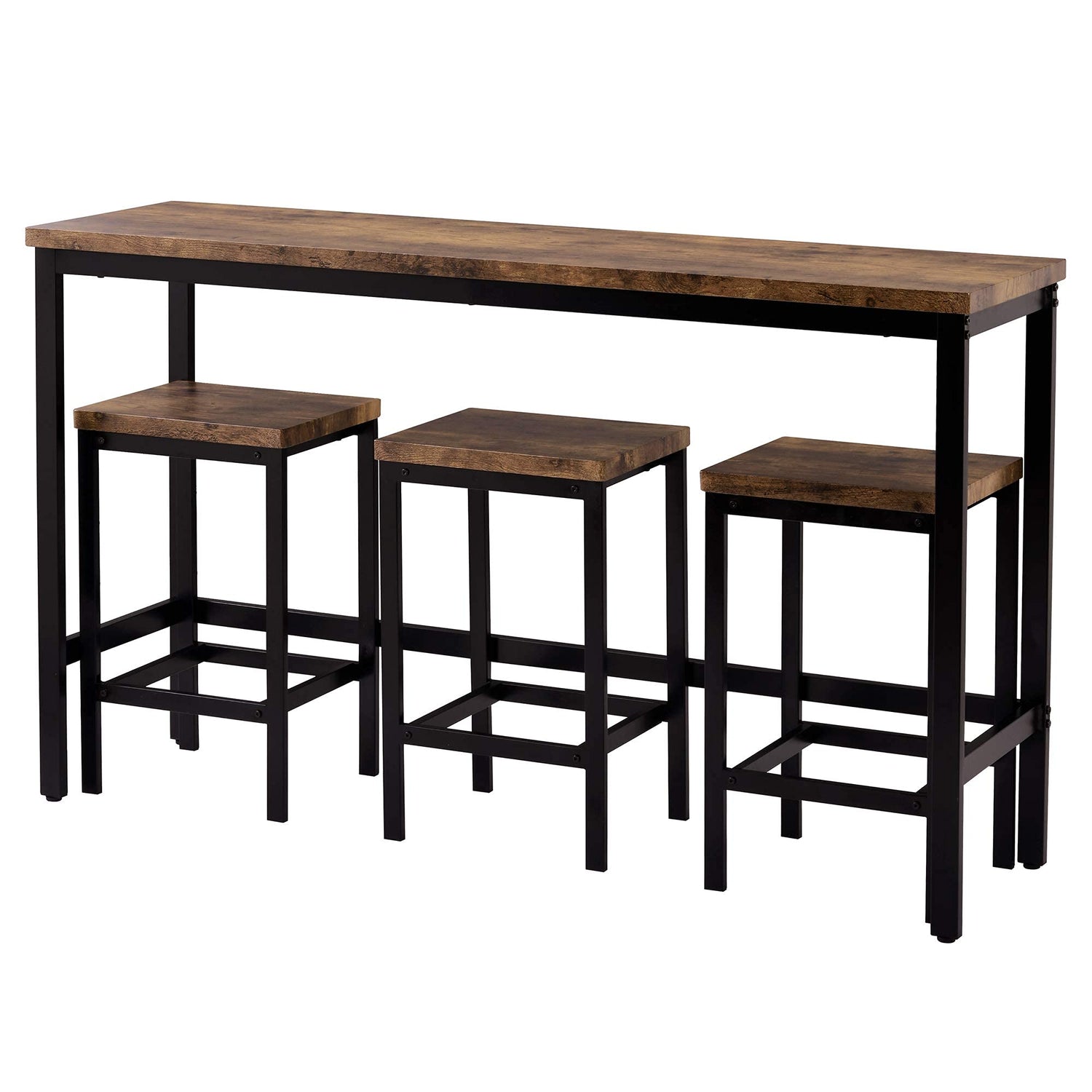• 4-Piece Counter Height Table Set: Made of high quality steel frame and MDF panels, this dining table set comes with 1 counter height long table and 3 stools. For extra comfort, all of the table and stools are designed with foot rests, which are not only sturdier but more humanized. Just rest your feet when enjoying drinking or eating.