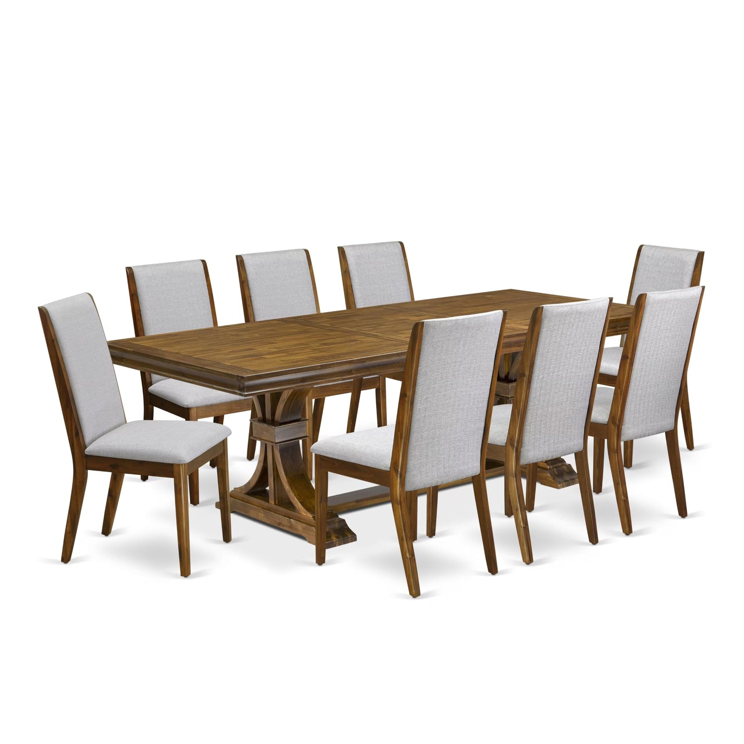 Luxe by East West Furniture LELA9-AWA-05 9 Pieces Dining Table Set Includes a Rectangular Kitchen Table and 8 Grey Linen Fabric Dining Room Chairs, Antique Walnut Finish