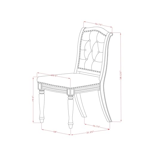 PRODUCT FEATURES: Frame Material: Acacia wood Seat Type: PU Leather Table Color: Antique Walnut Table Shape: Rectangular Chair Finish Color: Antique Walnut Chair Seat Color: Light Beige Chair Back Style: Button Tufted Table Dimension: Length: 68 /92, Width: 42, Height: 30. Chair Dimension: Length: 21.25; Width: 20.5; Height: 38.
