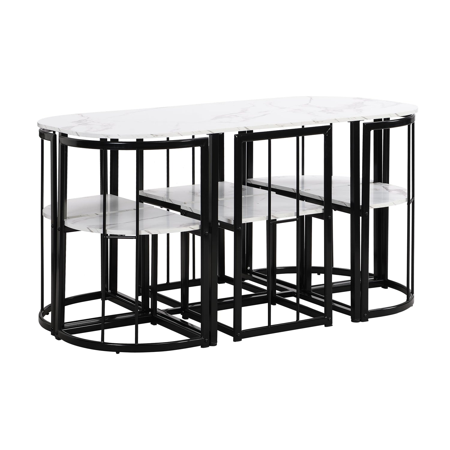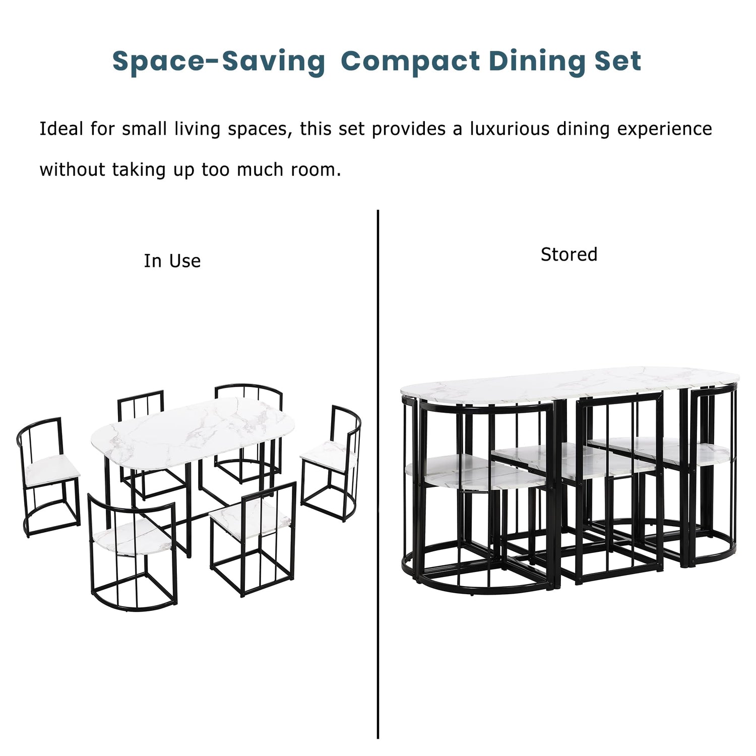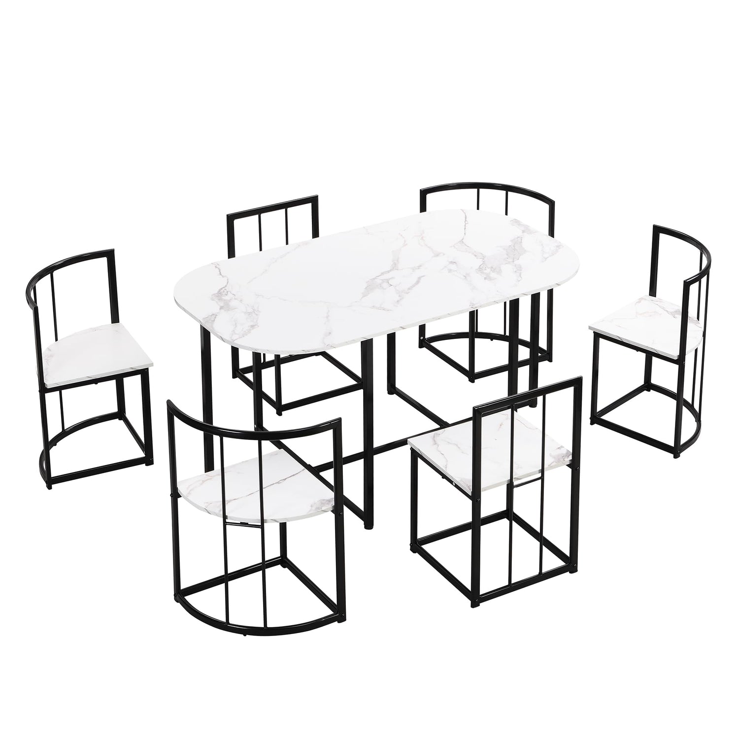 Merax 7 Piece Dining Table Set with Chairs for Saving Space Metal Kitchen Dining Room Table Set for 6 Persons, Black White