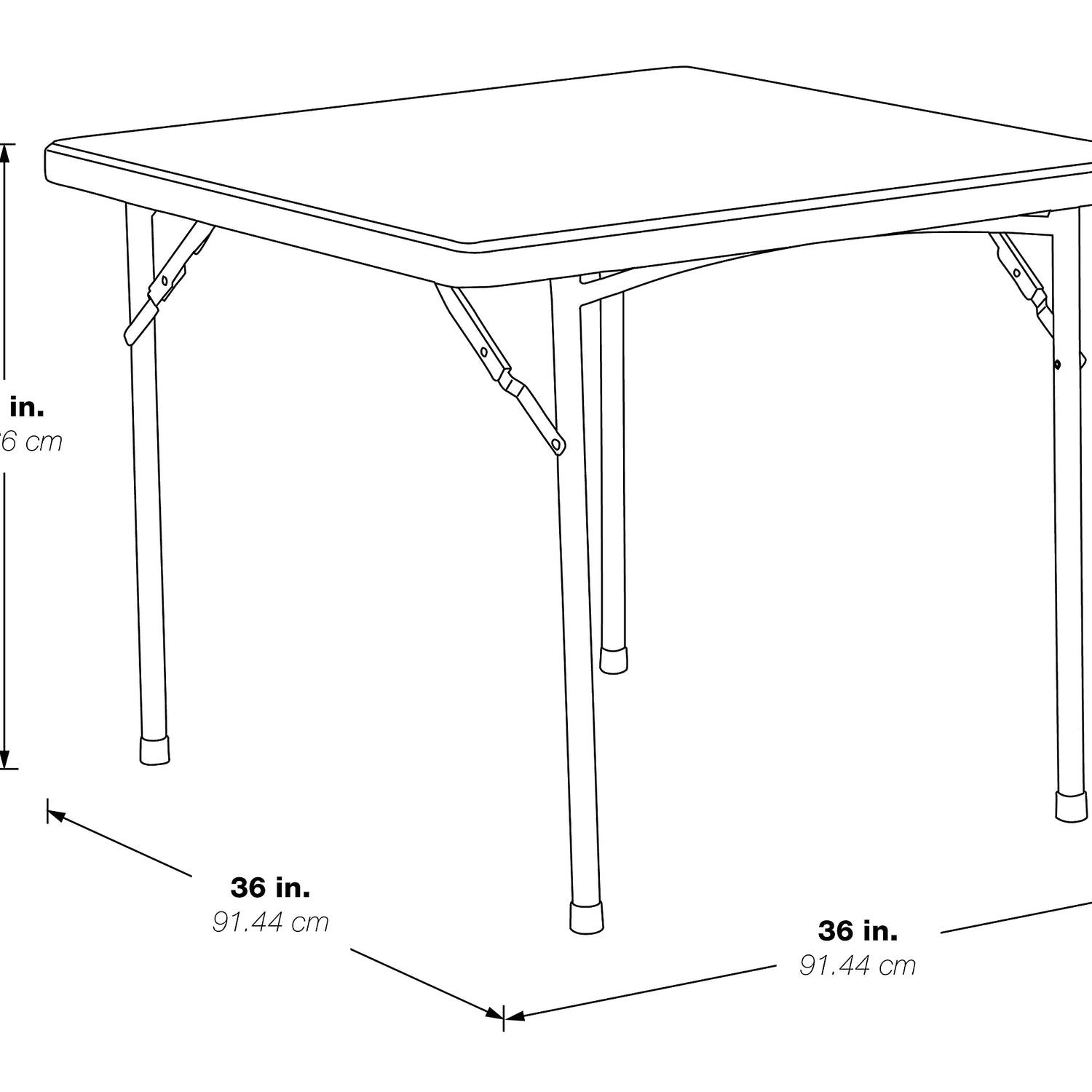 • 36” square folding table features a heavy-duty blow-mold light grey resin top for durability and easy cleanup