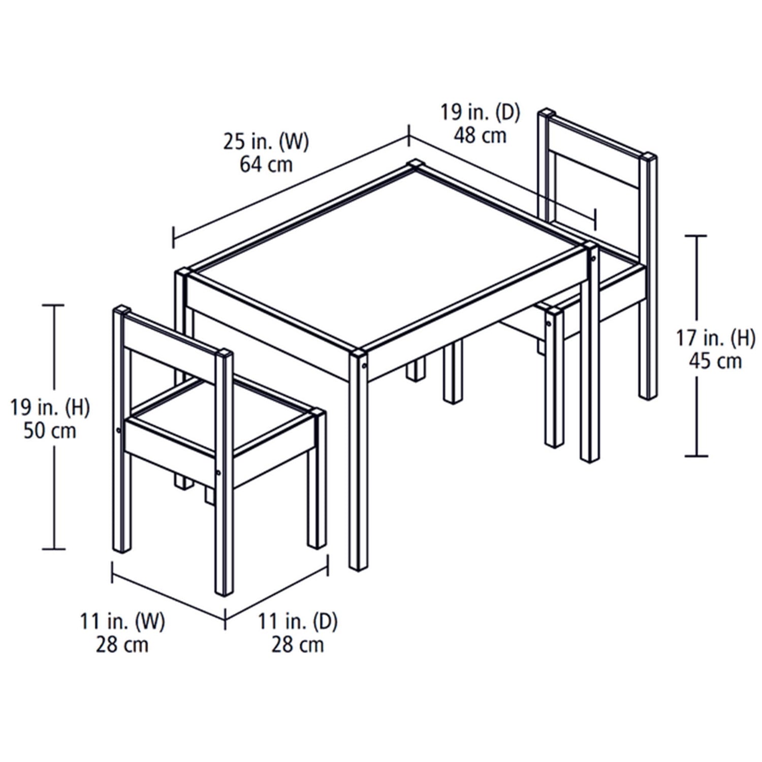 Details: Discover the PJ Wood 3 Piece Table and Chairs Set, an essential addition to any child's space. This versatile set is designed with meticulous attention to detail, catering to the dynamic needs of children aged 1 to 5 years old. The sleek espresso finish and wipeable surface of this children's table and chair set combine style with practicality, ensuring effortless cleanup after playtime or creative activities. Crafted with a combination of MDF for the tabletop and chair seats and solid rubberwood legs, this set offers an ideal blend of durability and aesthetic appeal. The solid rubberwood legs provide exceptional stability, guaranteeing safety and security during every use. Whether for arts and crafts, snack time, or playdates, this playroom table set offers a dedicated space for children to explore their creativity and engage in various activities. Designed with safety in mind, the Your Zone 3 Piece Table and Chairs Set in white offers peace of mind for parents and caregivers. Featuring thoughtful design features, this bedroom table set has rounded edges and smooth surfaces, minimizing the risk of accidents and creating a safe environment for your little ones to enjoy. The table measures 19.13 inches deep, 25.24 inches wide, and 17.83 inches tall. Each chair measures 11 inches deep, 11 inches wide, and 19 inches tall. Whether it's for playrooms, bedrooms, or daycare centers, this set is the ideal solution for creating a functional and inviting space tailored to the needs of young children. Encourage learning, creativity, and social interaction with the PJ Wood 3 Piece Table and Chairs Set, where durability, style, and safety converge to enrich the childhood experience.
