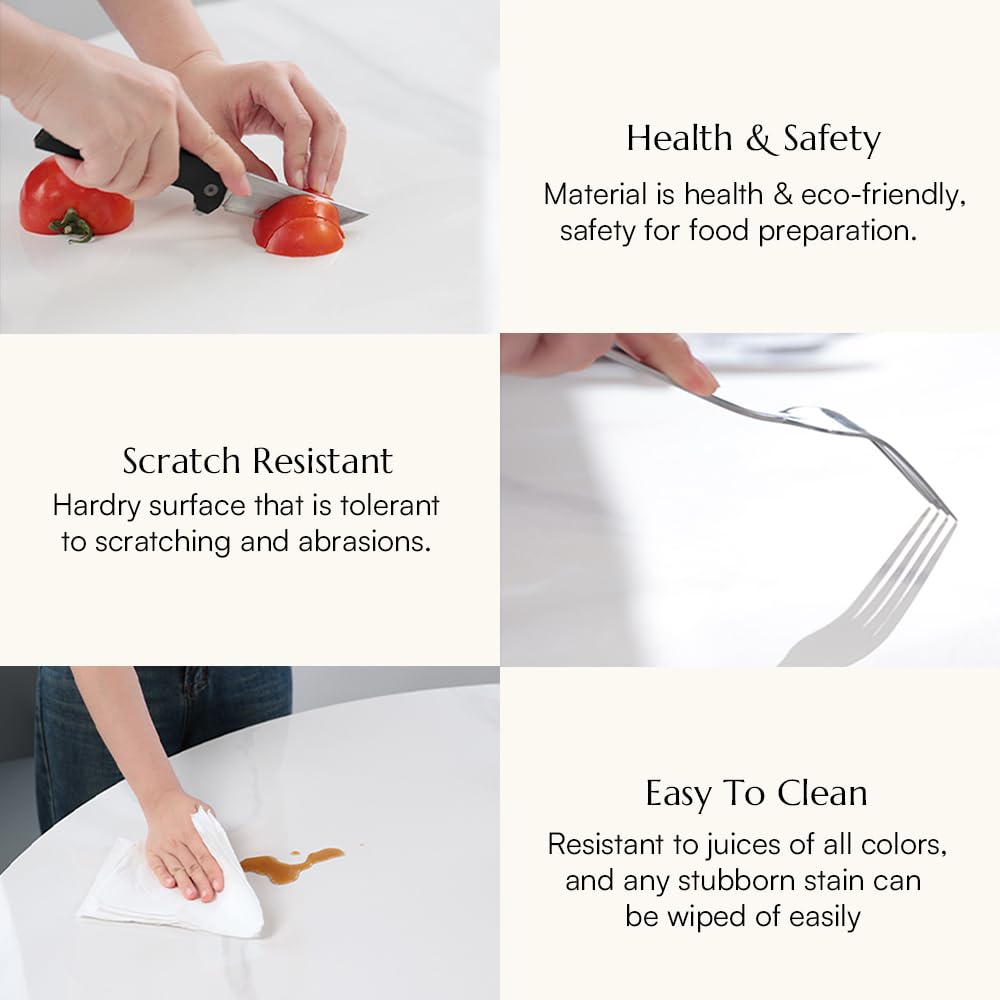 - Eco-friendly Sintered Stone Tabletop: Our stone dining table features an advanced, eco-friendly sintered stone tabletop designed to withstand both high temperatures and extreme cold. Its exceptional resistance to oil and stain penetration ensures your table remains fresh and vibrant. Effortless to clean up, even with stubborn stains, this table is designed to meet the highest safety standards maintain longterm use
