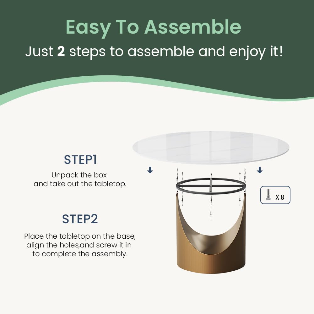 - Easy to Assemble: POVISON round dining table is easy to assemble, please put the sintered stone tabletop on the base and tighten it with screws to complete the installation. It is recommended that two people work together to complete the installation. The round dining table for 6 will be sent in two packages, and the time you receive each package may be different. (Product Weight: 300 LBS, Product Size: 59.06"W x 59.06"D x 29.53"H)
