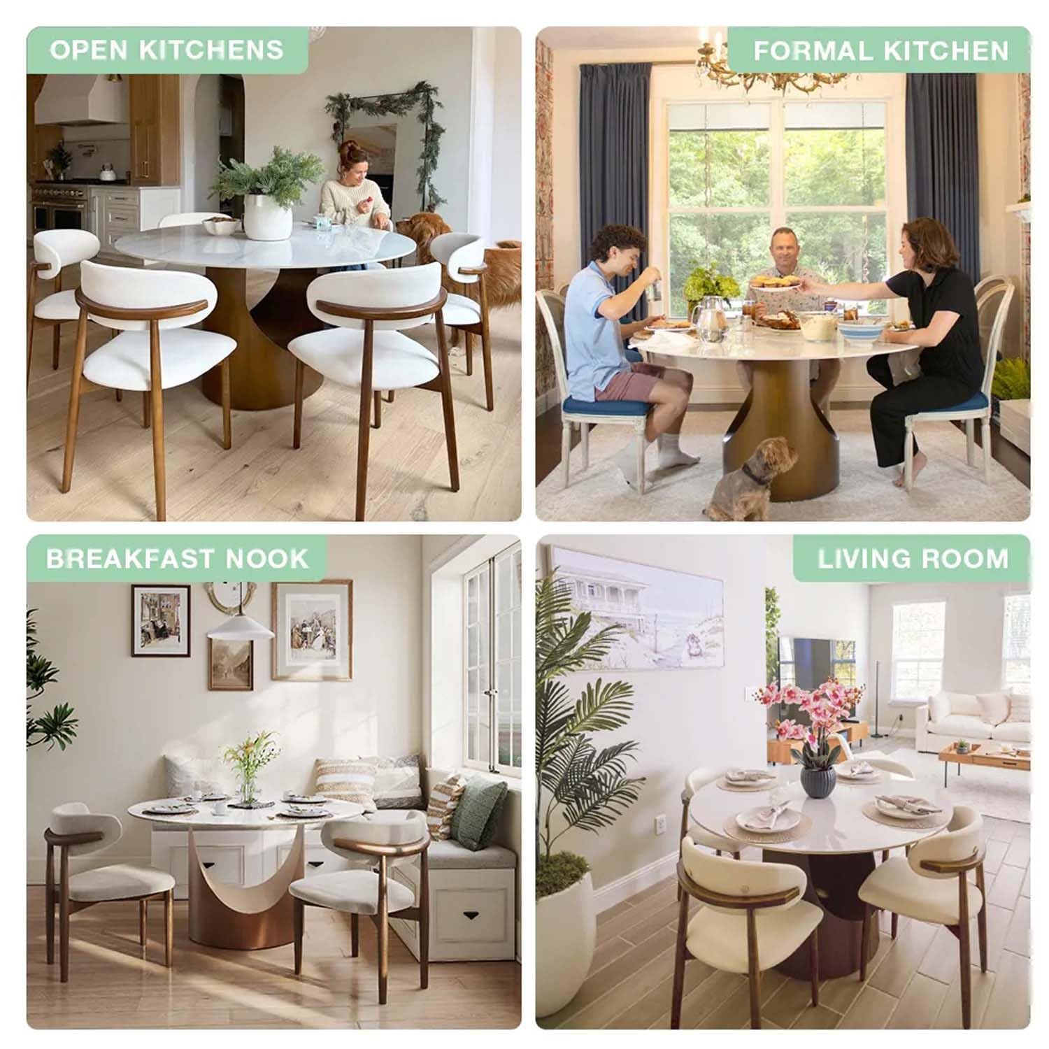 - Smooth Edge Design: The dining tabletop pattern is glossy white marble. Thickness of the tabletop is 12mm, and the edge of the tabletop adopts a humanized smooth edge design to prevent collision, making your family and pets feel more at ease at home. The size of this round dining table is 59 inches, table is recommended for 4-6 people
