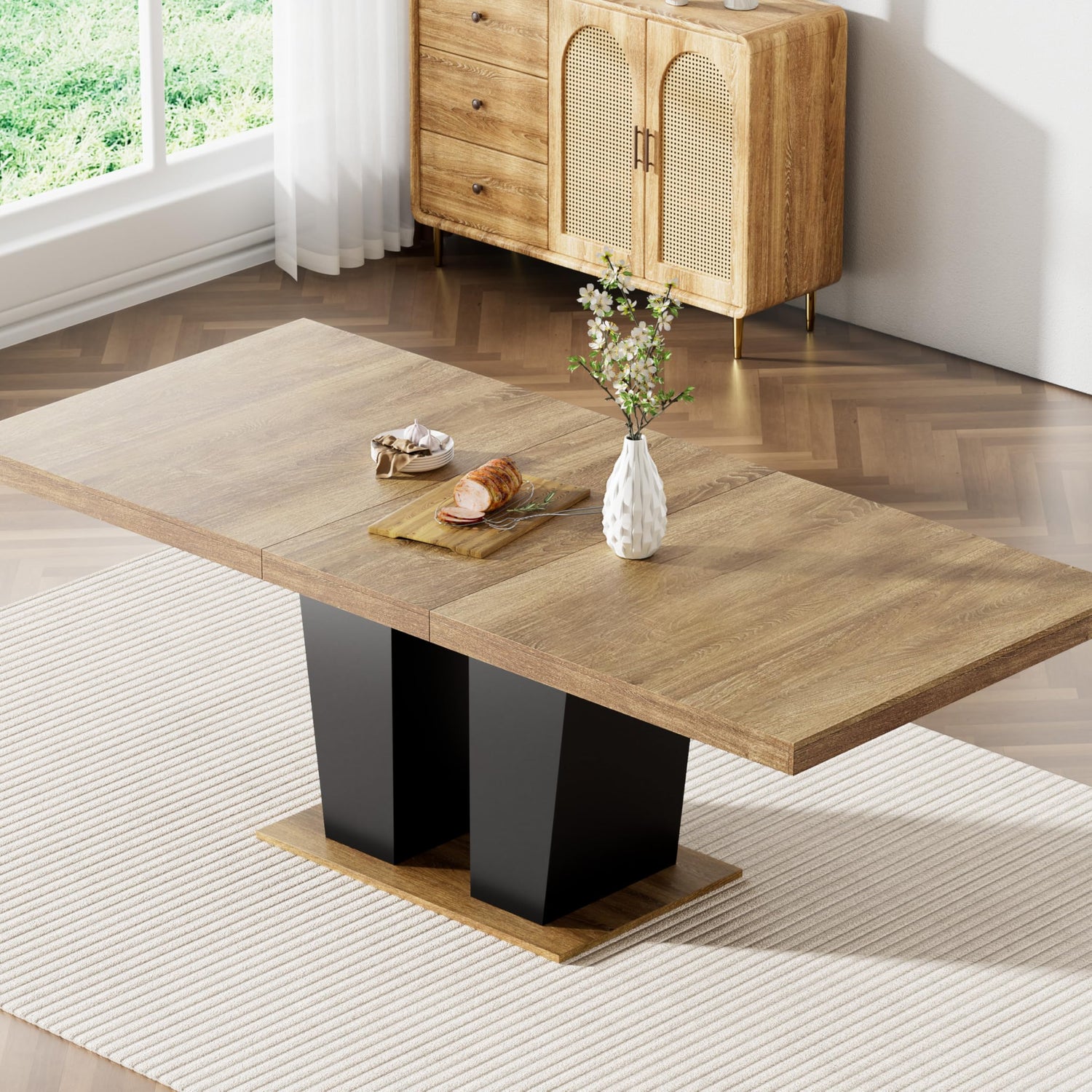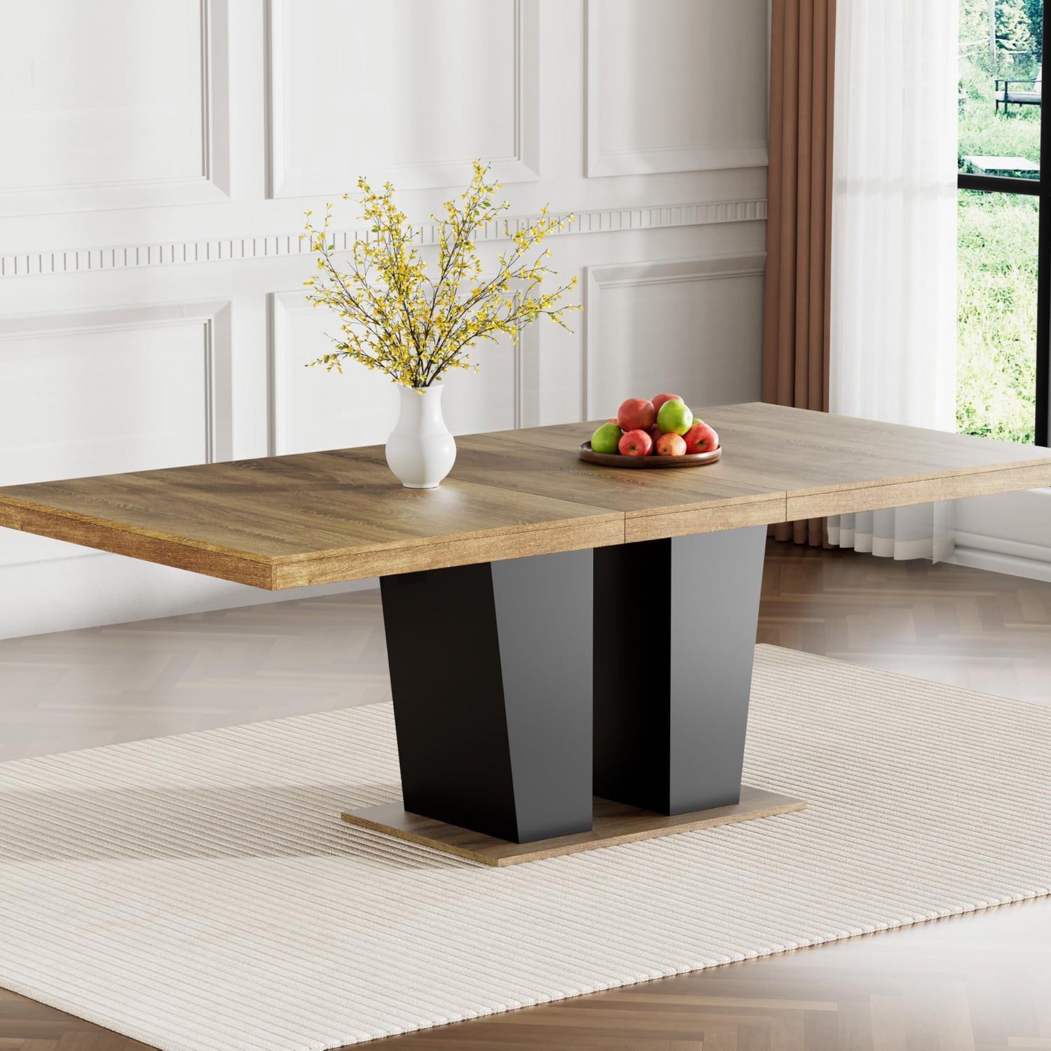 2. Multifunctional Dining Room Table: The table top has a extendable function, which increases the range of use of the table. Such a large dining table can comfortably seat 10 or more.
