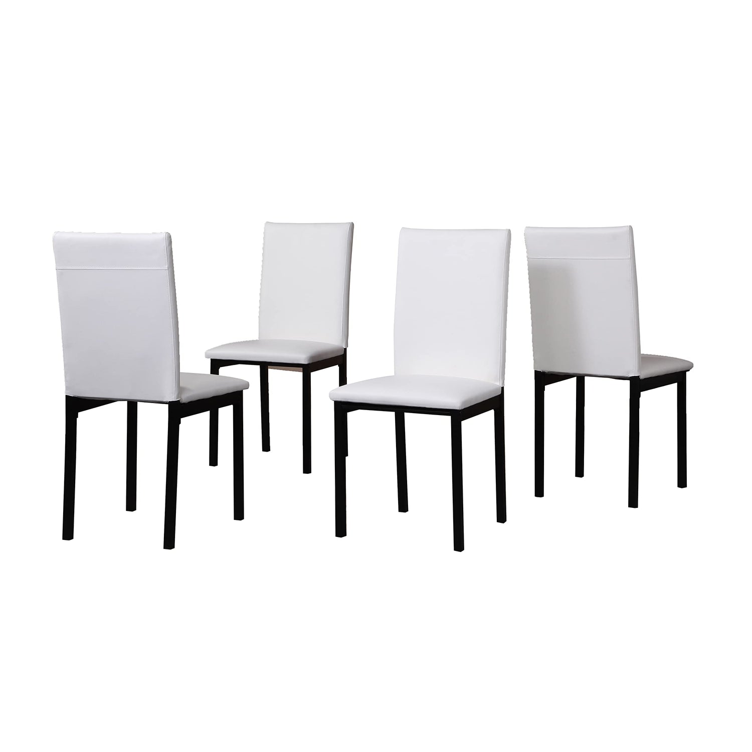 Roundhill Furniture 5 Piece Citico Metal Dinette Set with Laminated Faux Marble Top, White Table with White Chairs