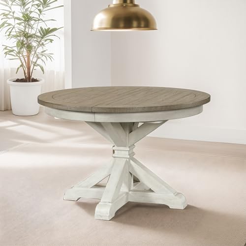 • EXPANDABLE DINING: The 48" round table extends to 66" with the 18" leaf, providing ample space for gatherings and special occasions.