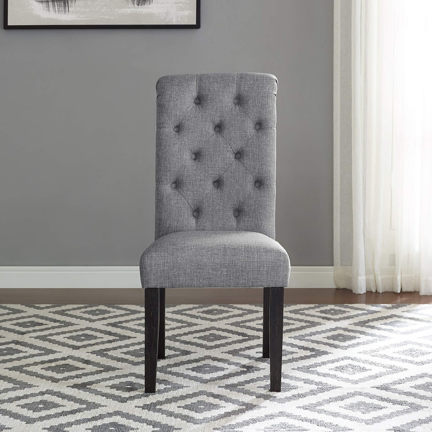 - The traditional style features stately turned table legs. The chair features button tufted back