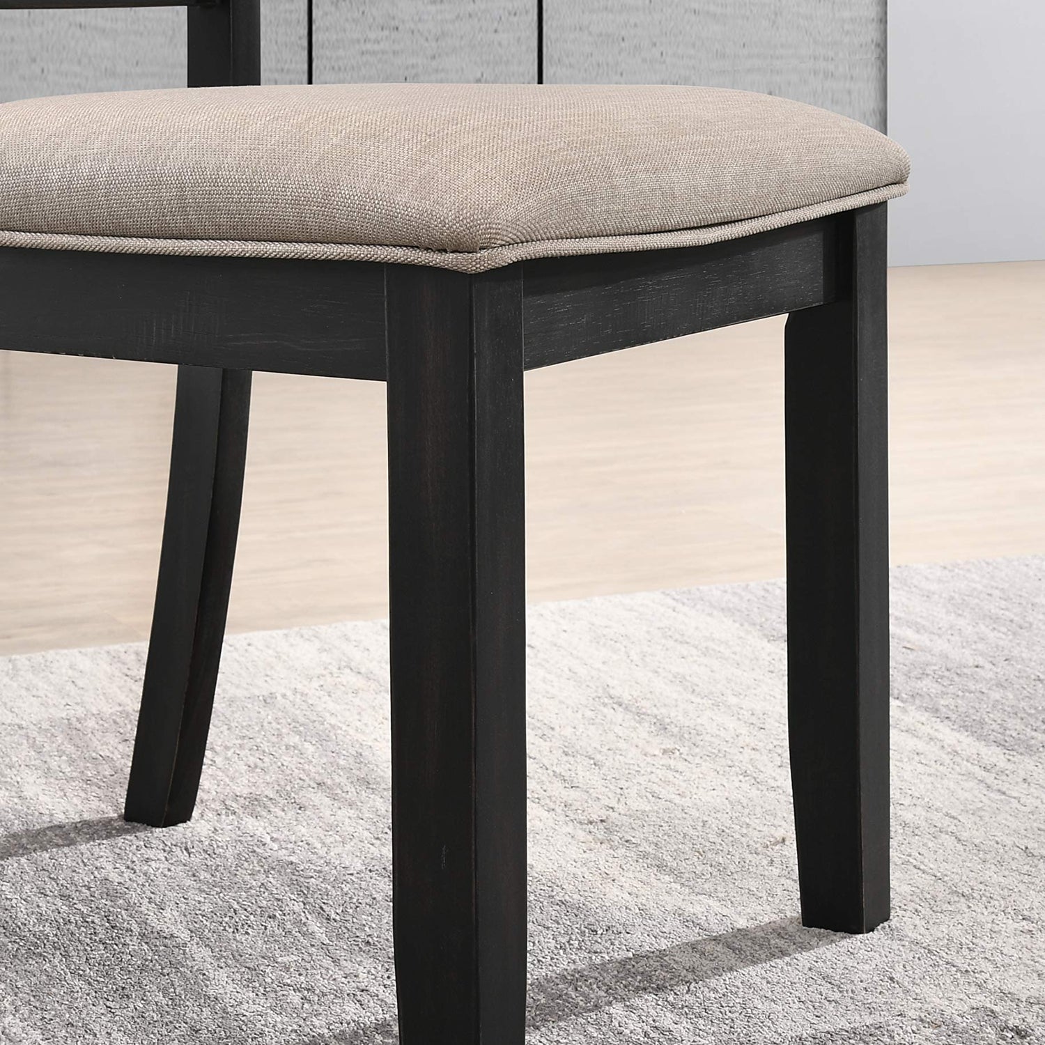 Details: Experience elevated dining with the Roundhill Furniture Windvale 5-piece Dining Set. The set includes a spacious dining table and four matching chairs, providing ample seating for family and guests. The round dining table with a cross-buck pedestal base with beautiful wood grain texture is sure to impress your guests. The table top made of oak veneers and engineered wood, and the table base made of solid rubberwood, ensure long-lasting durability. The chairs, featuring a cross-back design and finished in a matching color, perfectly complement the table's aesthetic. Built with solid rubberwood, these chairs guarantee long-lasting support. The cushioned seats, adorned with tan linen-look upholstery, offer both elegance and comfort. Elevate your dining space with this Windvale 5-Piece set that embodies modern sophistication. Choose from three color options: Black, Oak, and Espresso.