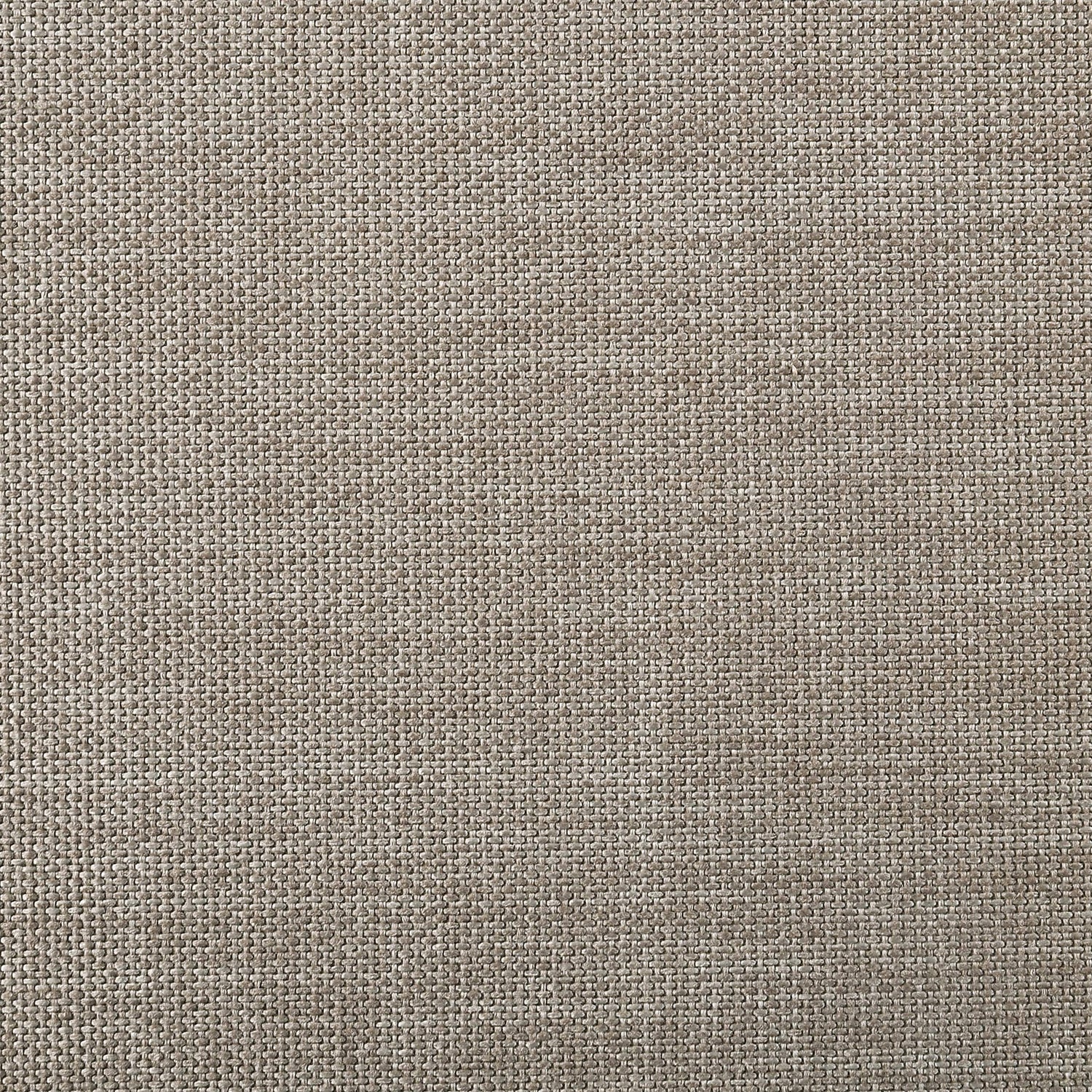 - The dining chair features a cross-back design with a tan linen-look fabric upholstery