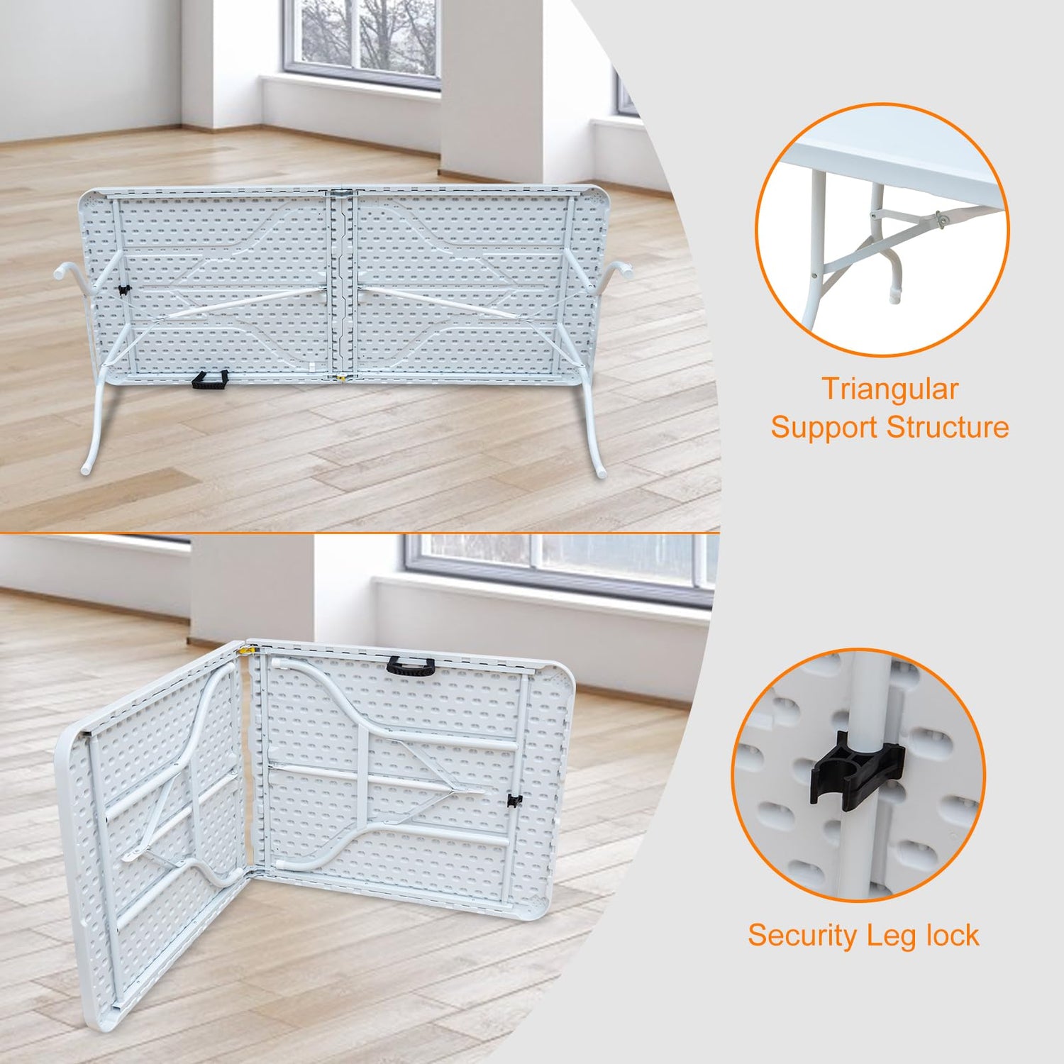 SculPong Folding Table Camping Table Multi-Purpose Picnic Table Outdoor Indoor Casual Party Table 6FT