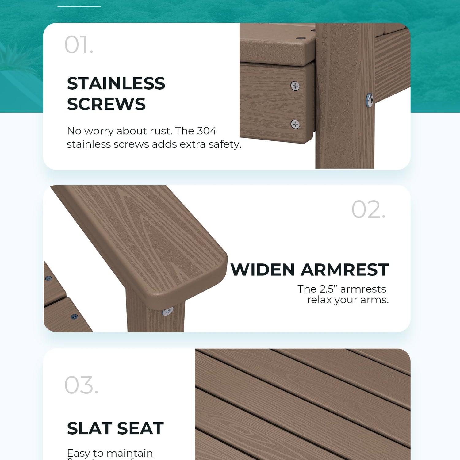 • 【Family-Friendly】HDPE patio dining table sets are family-friendly, providing a comfortable and safe space for outdoor meals and gatherings. Its rounded edge is safer than the steel material, making it ideal for families with children.