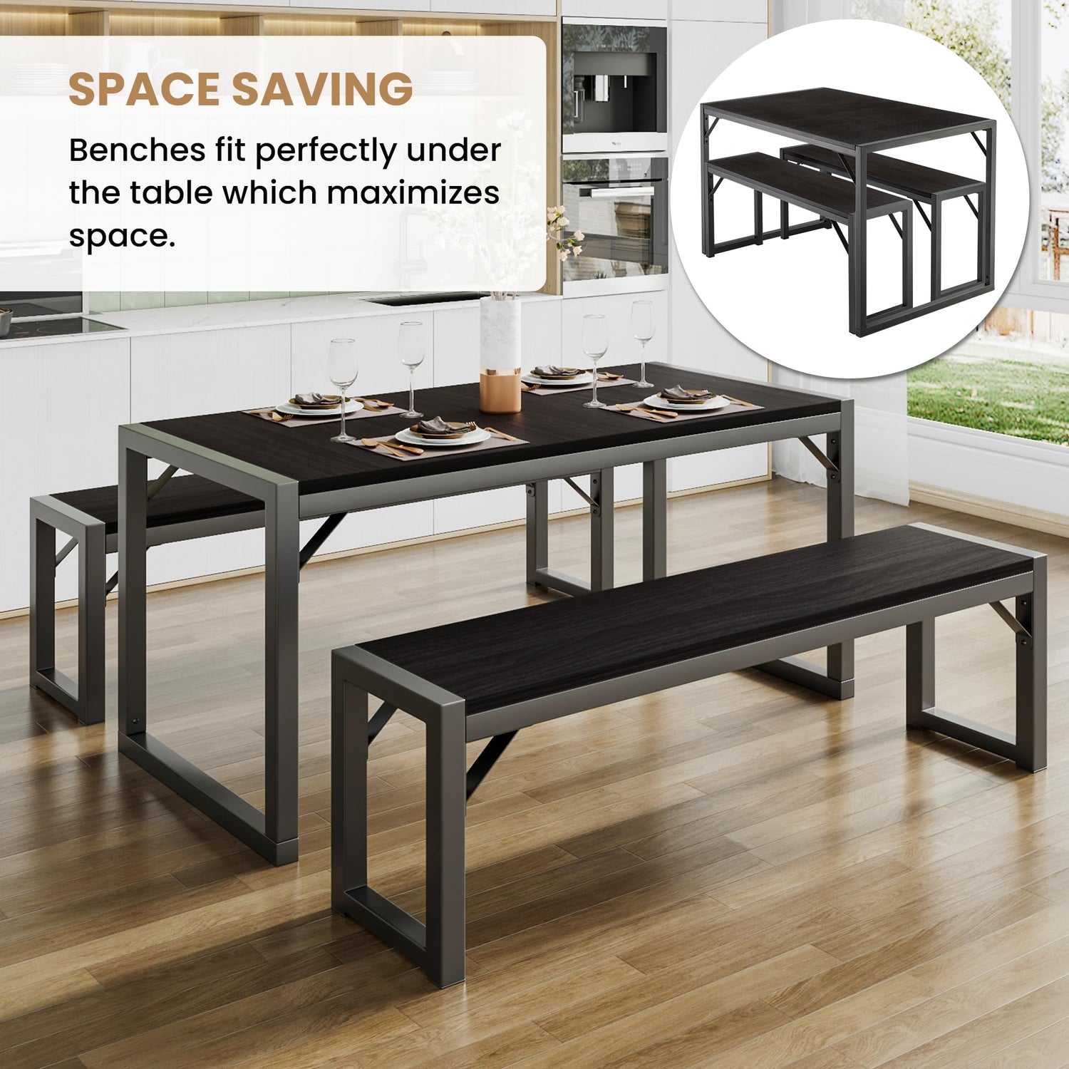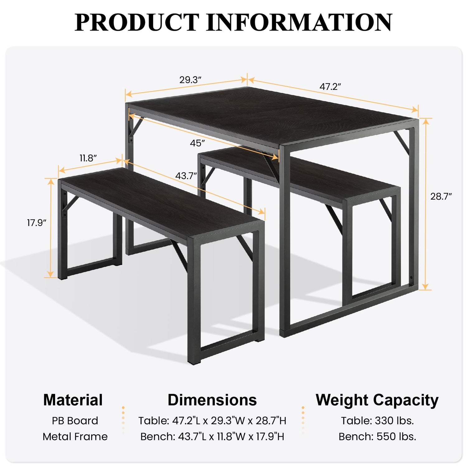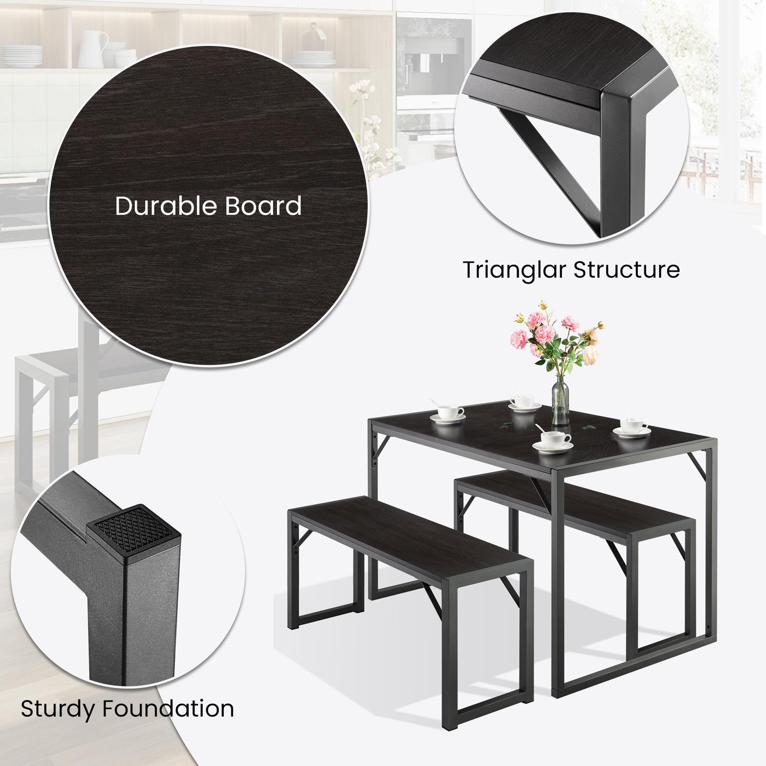• Great for Small Space!: This 3-piece dining set is ideal for limited spaces. Benches fit perfectly under the table, which maximizes space while maintaining aesthetic appeal.
