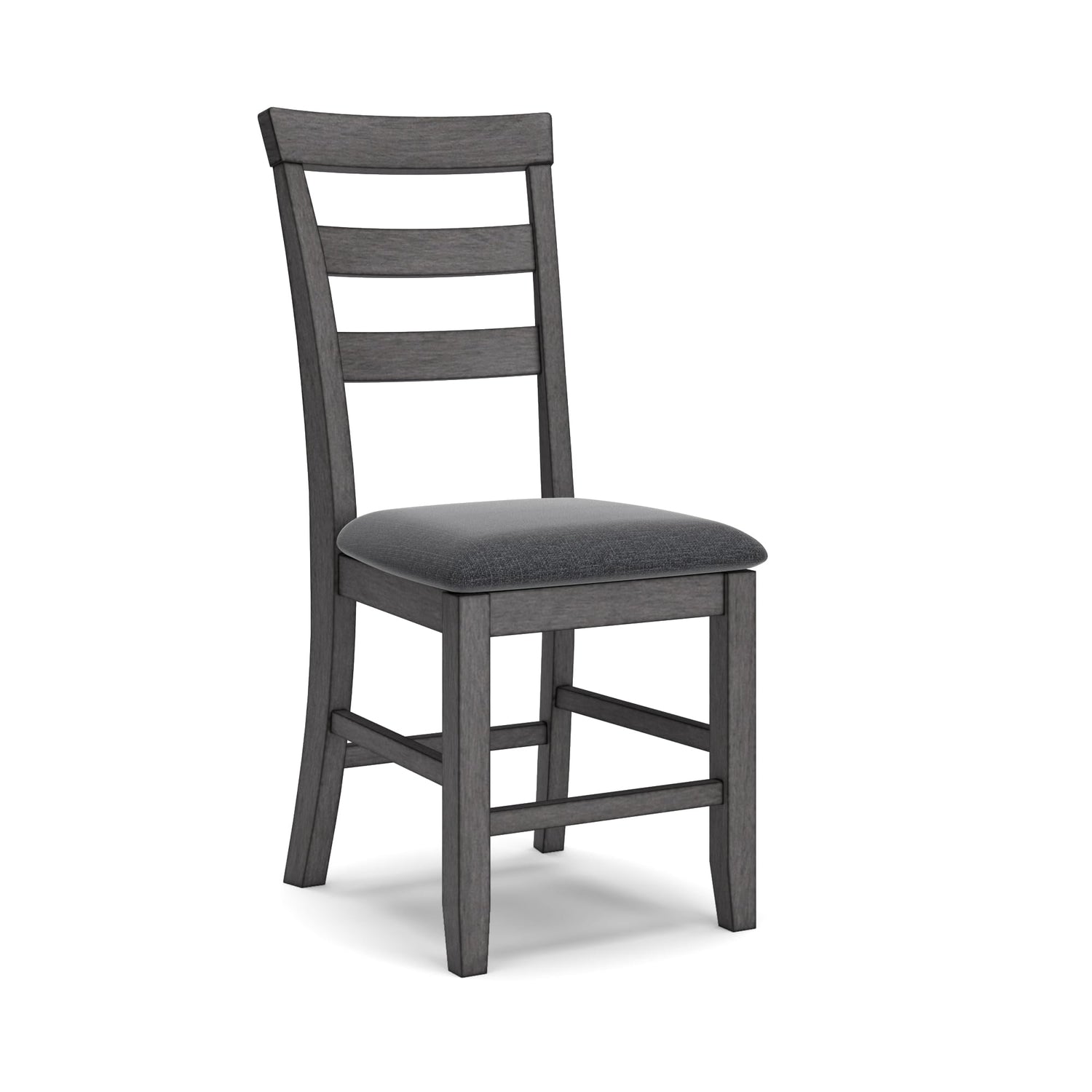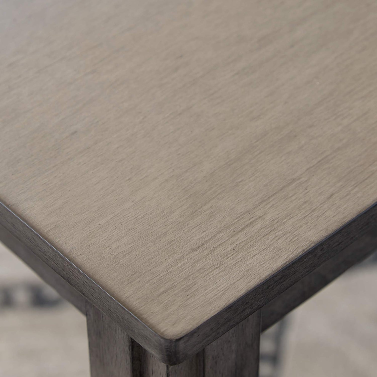 • TRANSITIONAL CASUAL DINING: Made with select solid wood, birch veneer and engineered wood substrate. Cushioned seats covered in textured gray polyester upholstery with polyfiber fill