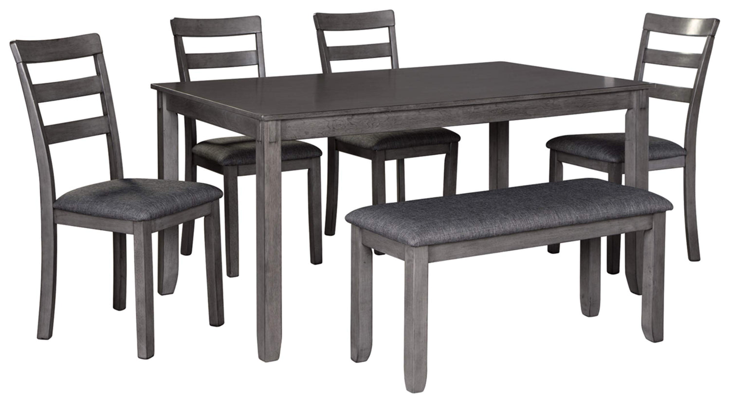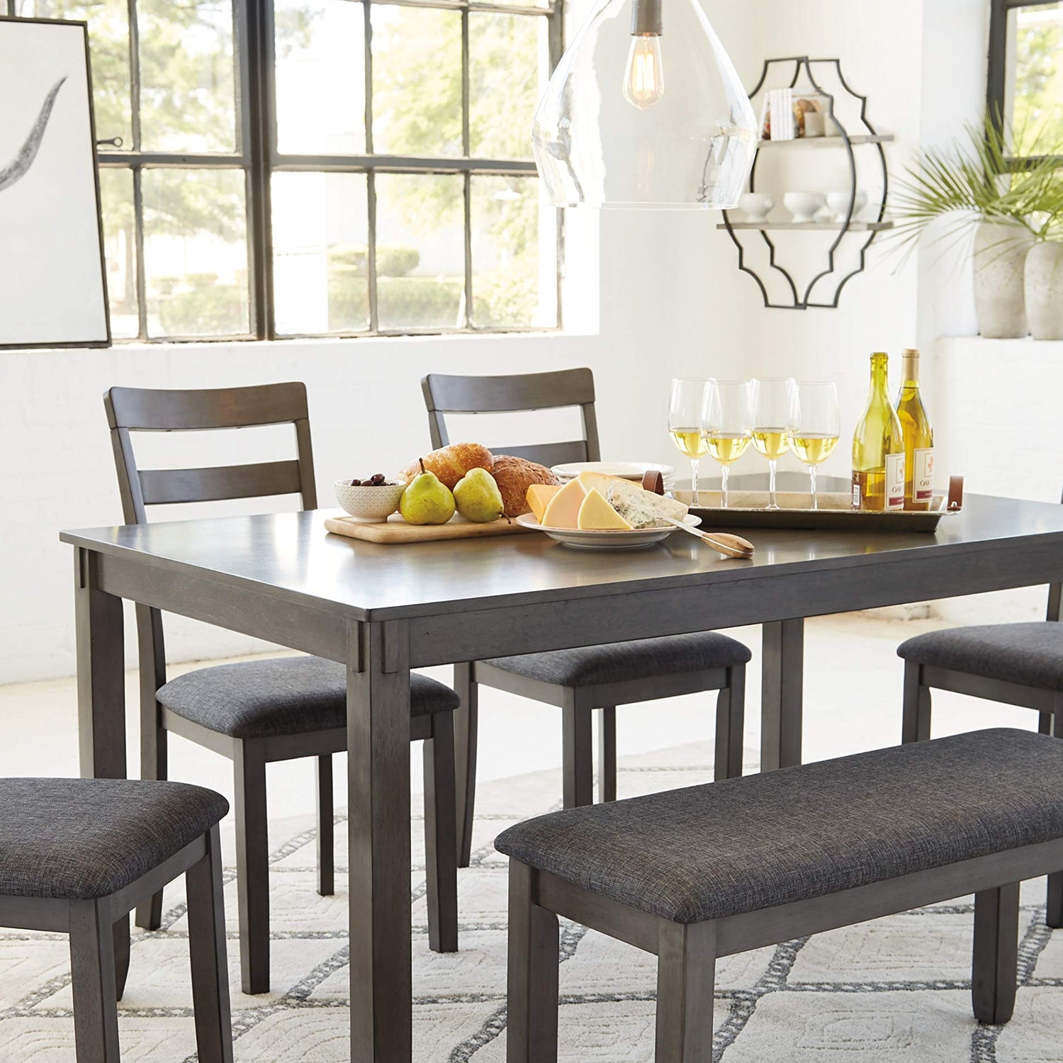 Signature Design by Ashley Bridson Modern 6 Piece Dining Set, Includes Dining Table, 4 Chairs & Bench, Gray