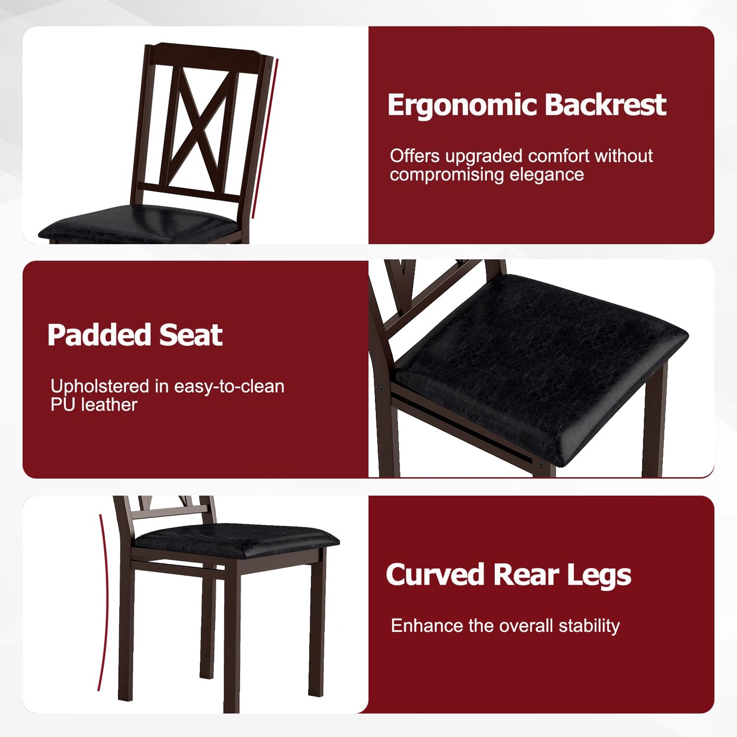 - ๐๐ฅ๐๐ค๐ก๐จ๐ฉ๐๐ง๐๐ ๐พ๐๐๐๐ง๐จ: The 4 dining chairs come with stylish hollowed backrests and wide seats, along with high-density sponge cushions, ensuring a super comfy sitting experience. Additionally, the PU cushion is waterproof and you can easy to clean with a damp cloth.