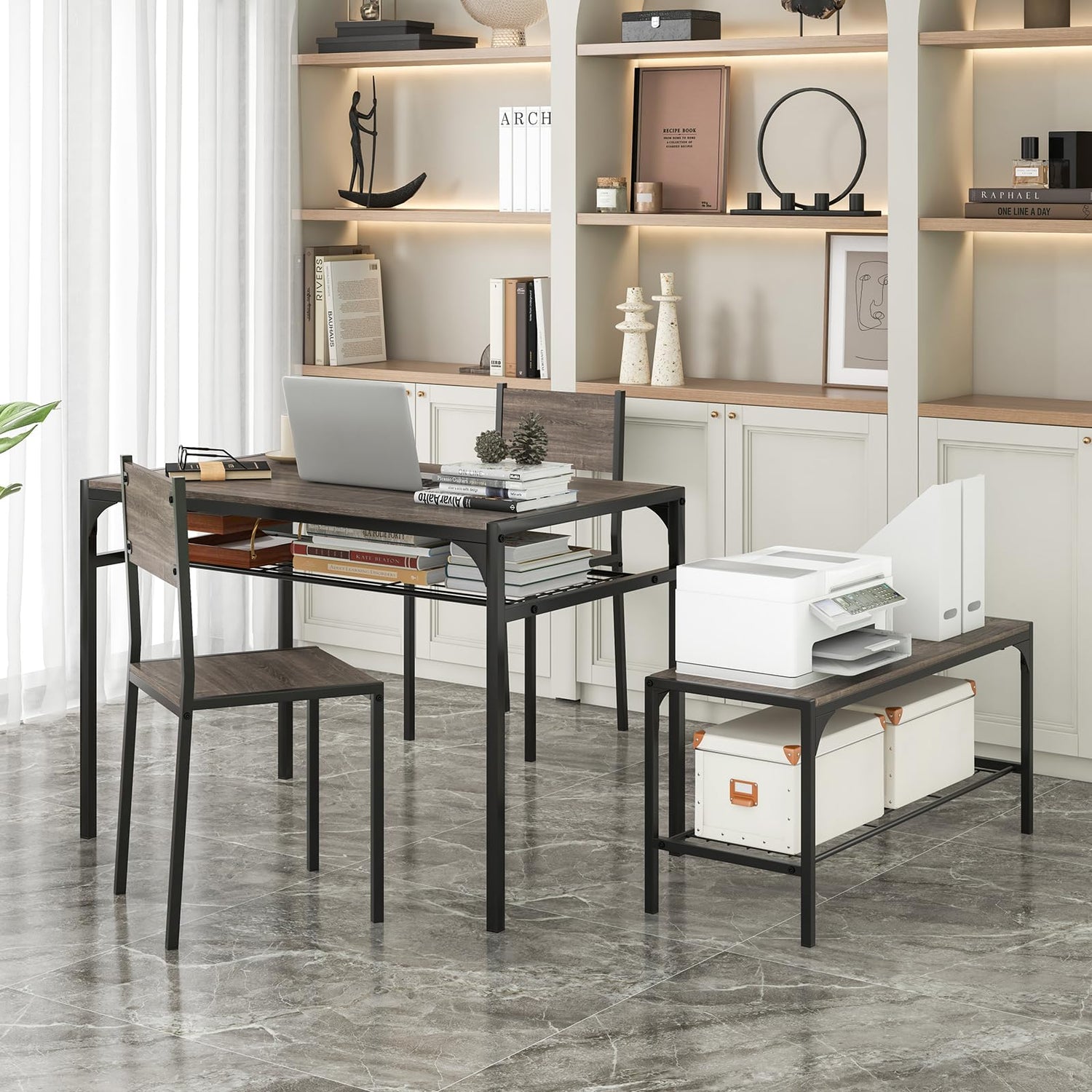Tangkula Dining Table Set for 4, Kitchen Table and 2 Chairs for 4 with Bench, Additonal Storage Rack, 4 Piece Dining Table Set for Small Space, Apartment