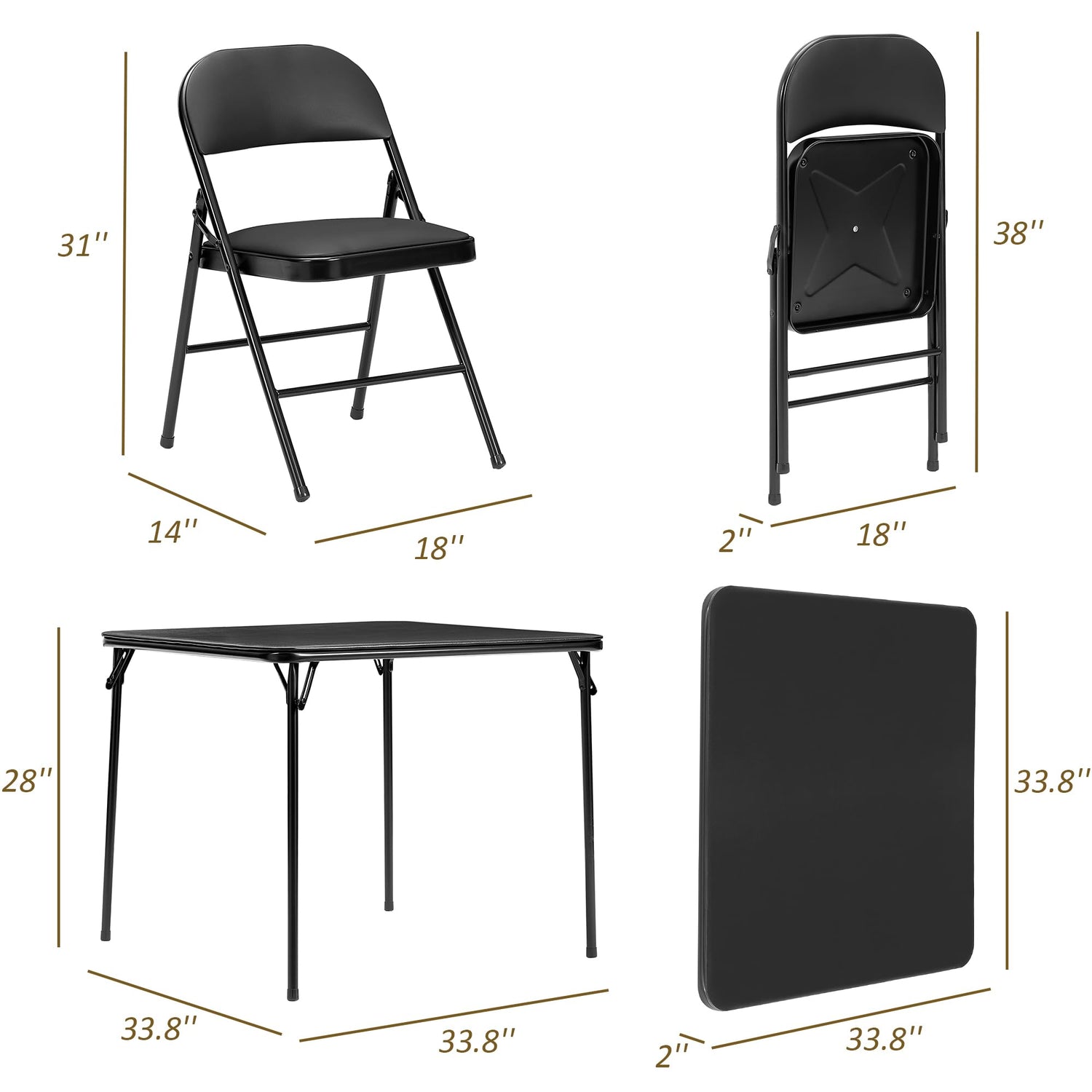 VECELO Folding Card Table and Chair Set of 5 Portable with Padded Tabletop, No Assembly Required, Black