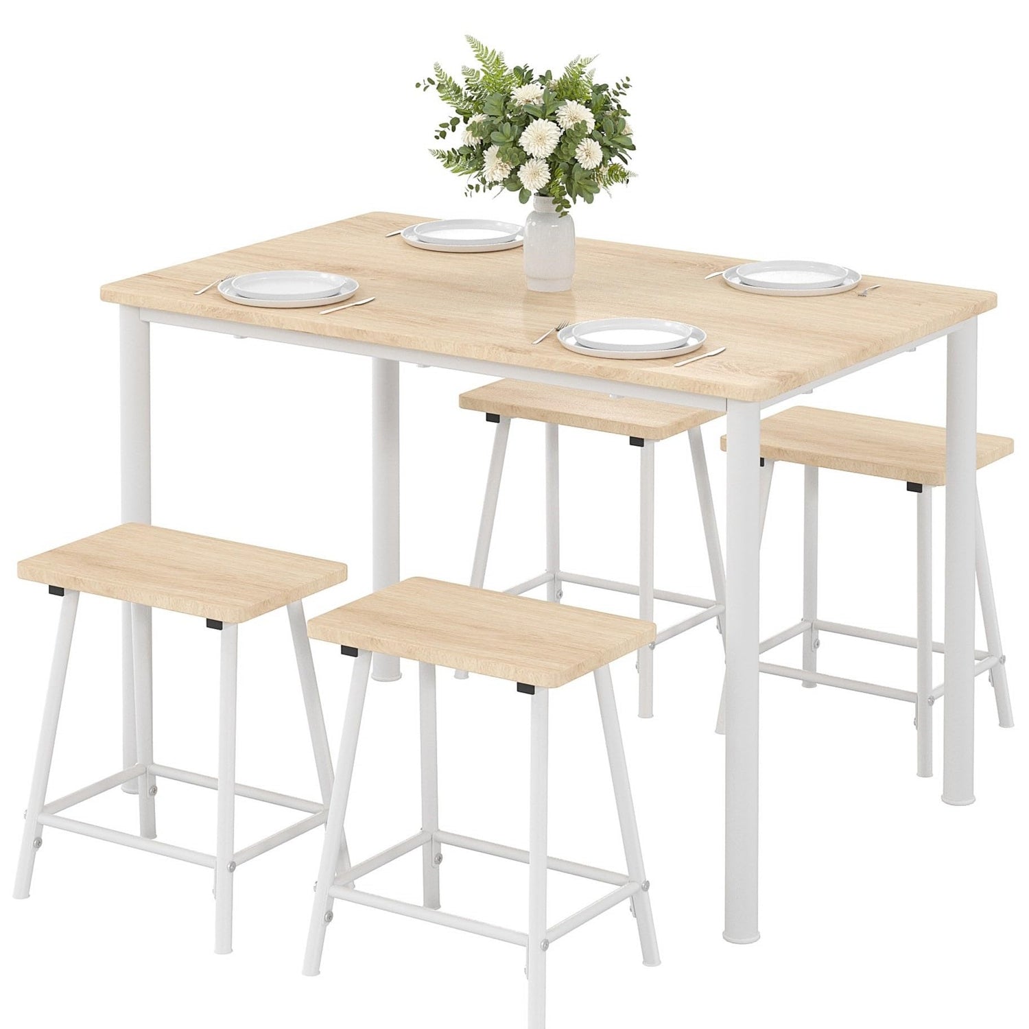 Details: VECELO 5-Piece Dining Table Set with Wood Grain Tabletop & 4 Stools - Ideal for Small Spaces