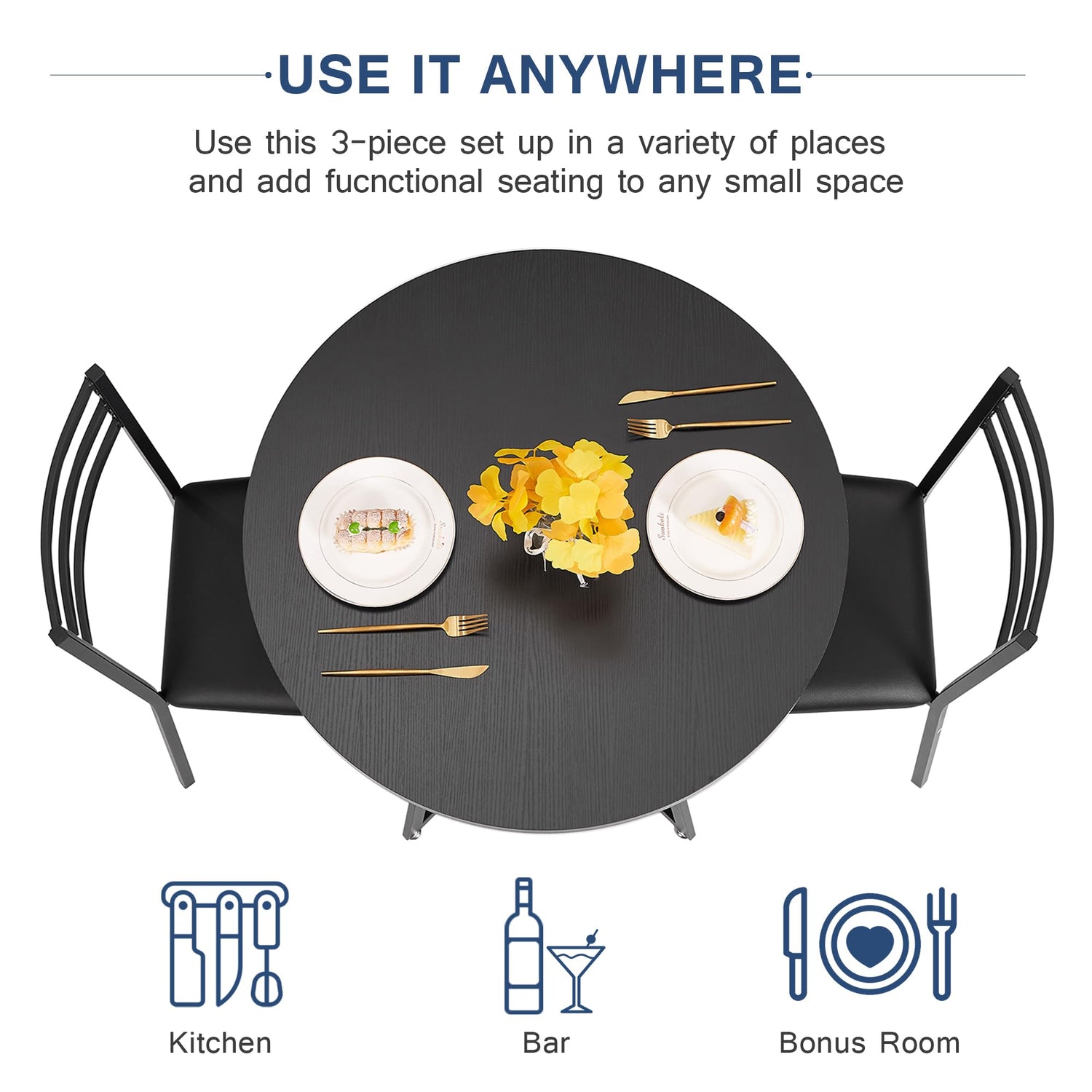 Details: VECELO 3 Piece Round Dining Table and Chairs Set