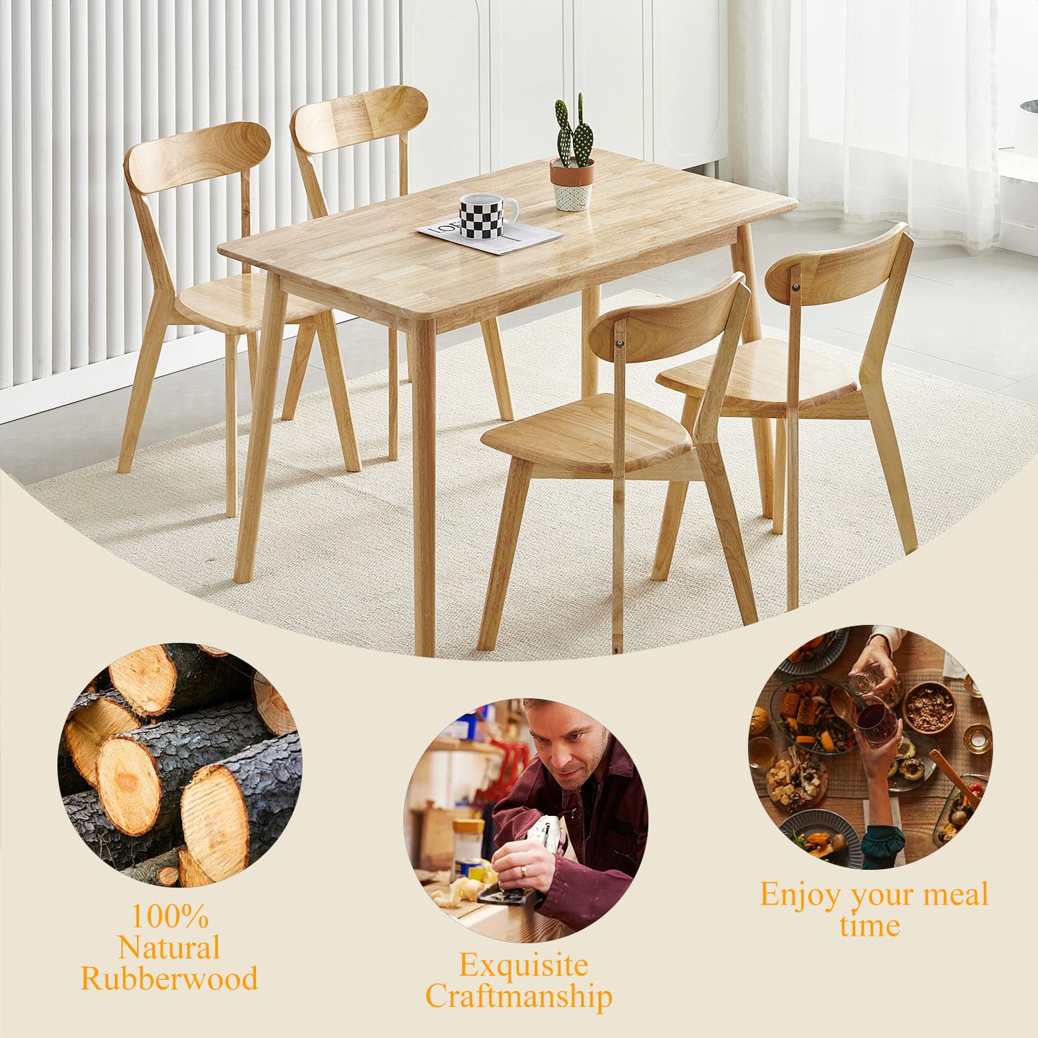 - [Sturdy Wooden Dining Room Table Set] The modern 5 pieces wood dining table chairs set, made of natural solid wood, the wood rectangular table can support up to 110lb and the wooden chairs can support up to 280 lb.