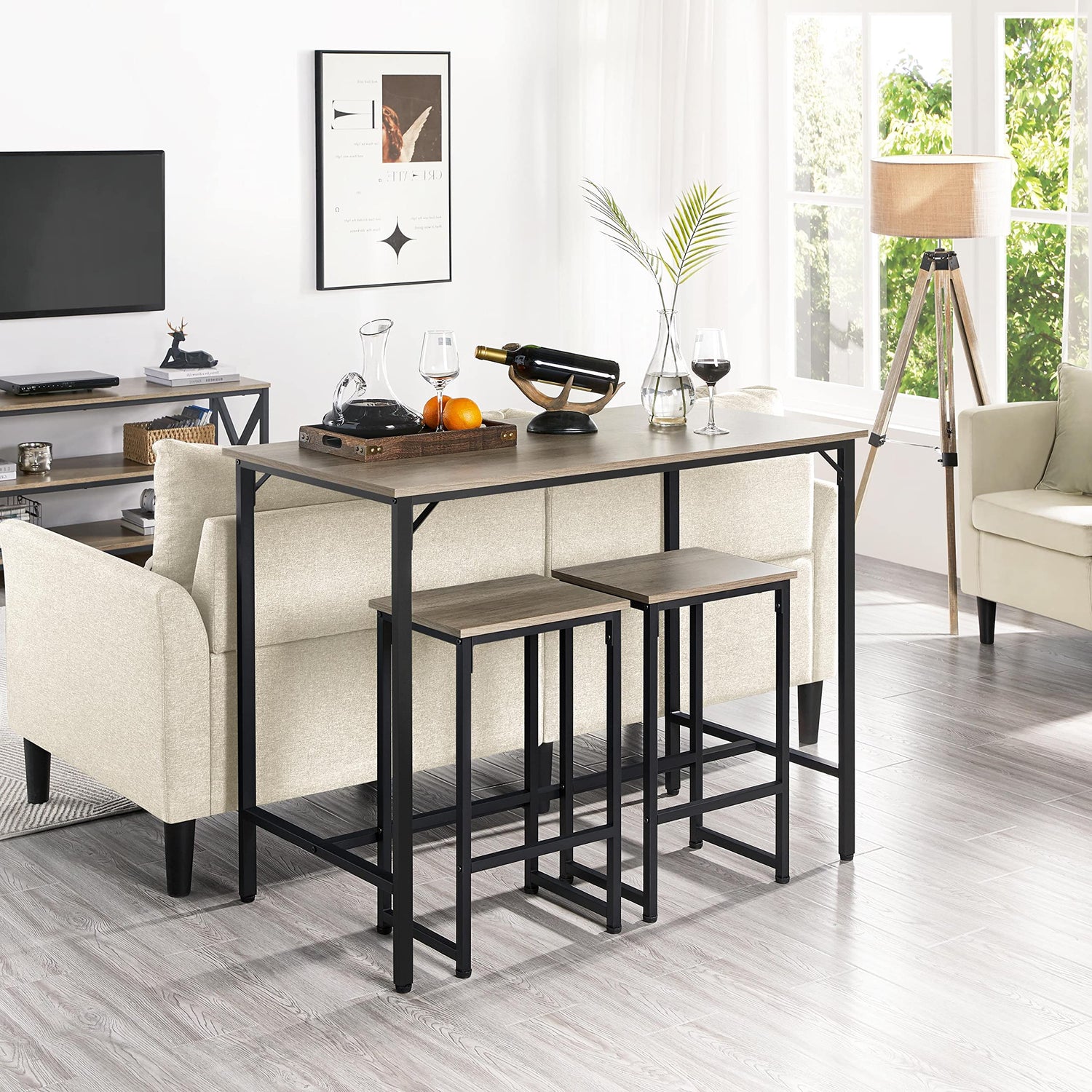 Experience the practical elegance of the Yaheetech 3 Piece Industrial Bar Table Set, where comfort meets style in every gathering.