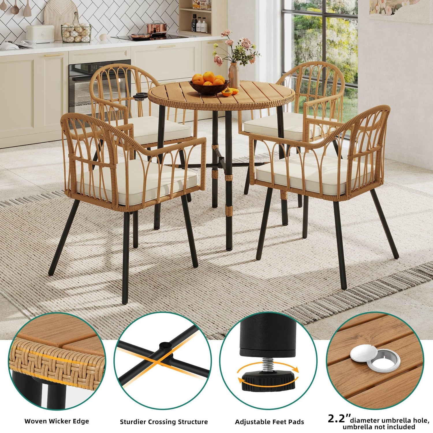 YITAHOME 5-Piece Dining Table Set with 4 Chairs, Kitchen Table & Chairs Set for 4, Boho Dining Room Table Set with Soft Cushion Chairs and 4 Holders, Ideal for Kitchen and Dining