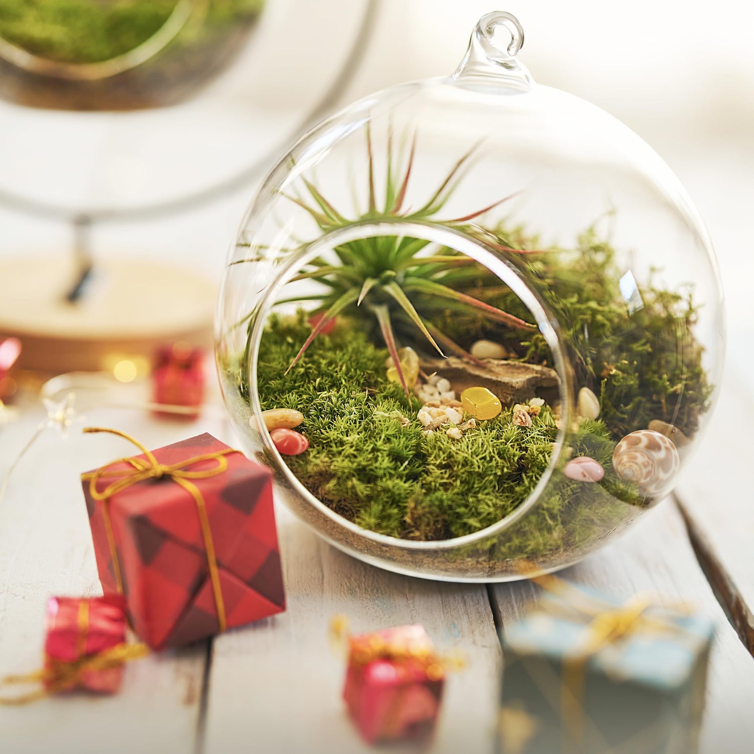 - Crystal Stones & Shells – Natural Aesthetic Accents Our carefully selected stones and sea shells add sparkle and texture to your terrarium. These decorative elements create a calm, balanced look inspired by nature.