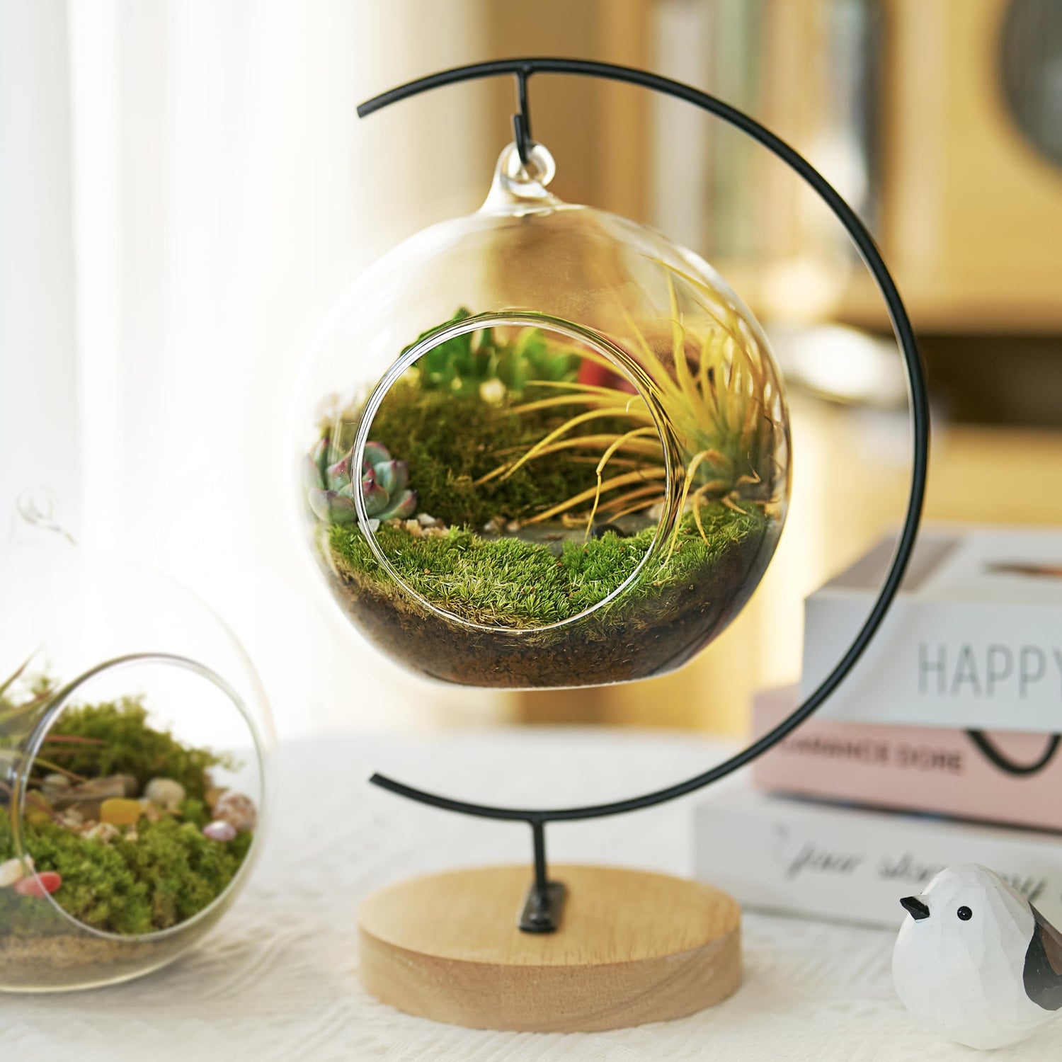 - Low-Maintenance Living Decor Designed for desktops, shelves, windowsills, and office corners, this moss terrarium adds a peaceful green touch to your space. Just spray with water occasionally to keep it fresh and lively.