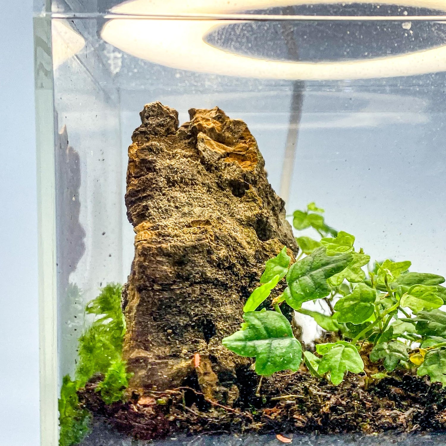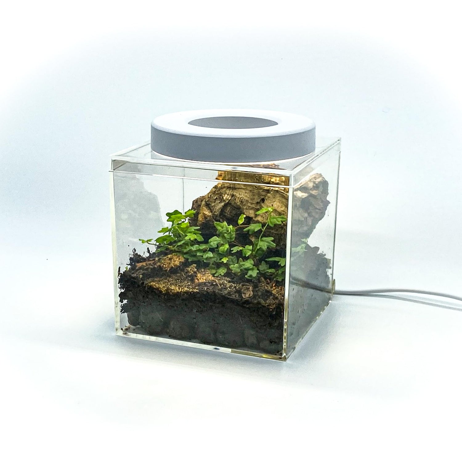 - Tiny but Mighty: Compact 4x4 inch acrylic enclosure designed for desktop displays; showcases your ecosystem beautifully under a halo ring light with timer and adjustable dimming levels for optimal plant growth.