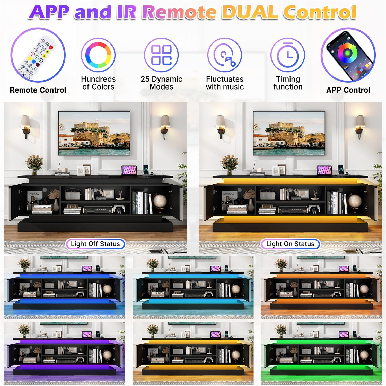 71IN LED TV Stands w/Power Outlet for 85/80/75 Inch TV,High Glossy Modern TV Console Gaming Entertainment Center with 2 Storage Cabinets,Dual LED Lights Strips for Living Room,Bedroom,Black