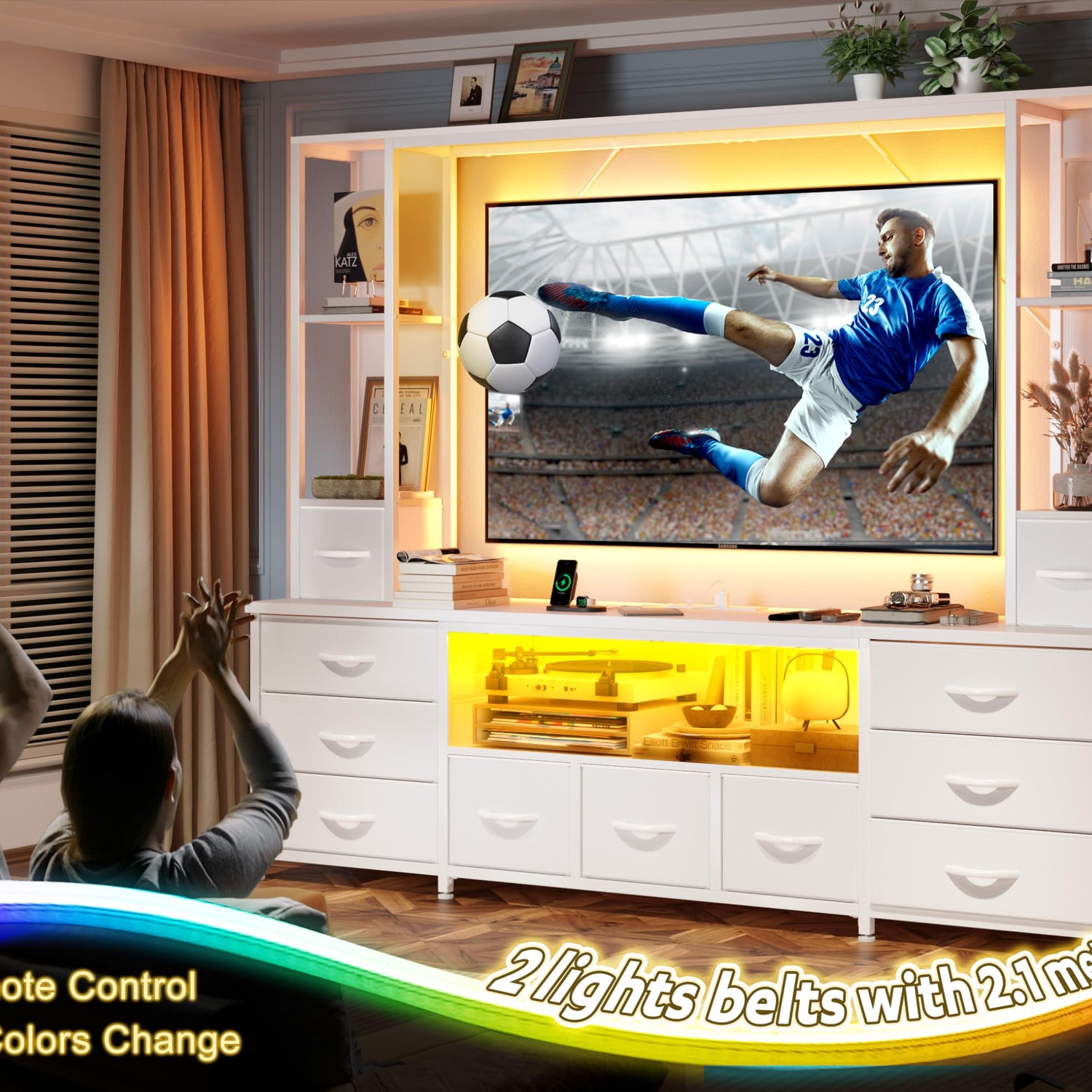 78.6" W Stands for Living Room, Large Wall Unit Entertainment Center with 11 Fabric Drawer,Dresser TV Stand with 2 LED Lights & Power Outlets,TV Stand for Bedroom with Storage Shelves,White