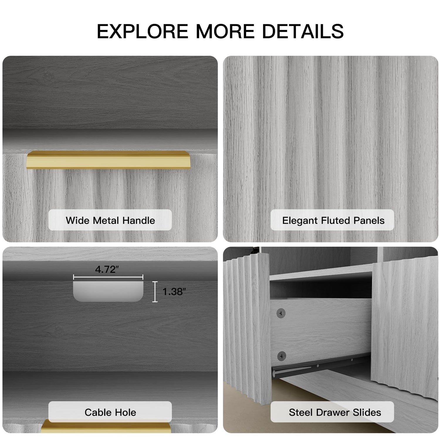 • 【Versatile for Any Space】Featuring a sleek fluted panel design, the TV stands for living room add a modern touch. Whether placed in the living room, bedroom, or entertainment area, its blends with different décors for a stylish yet functional finish.