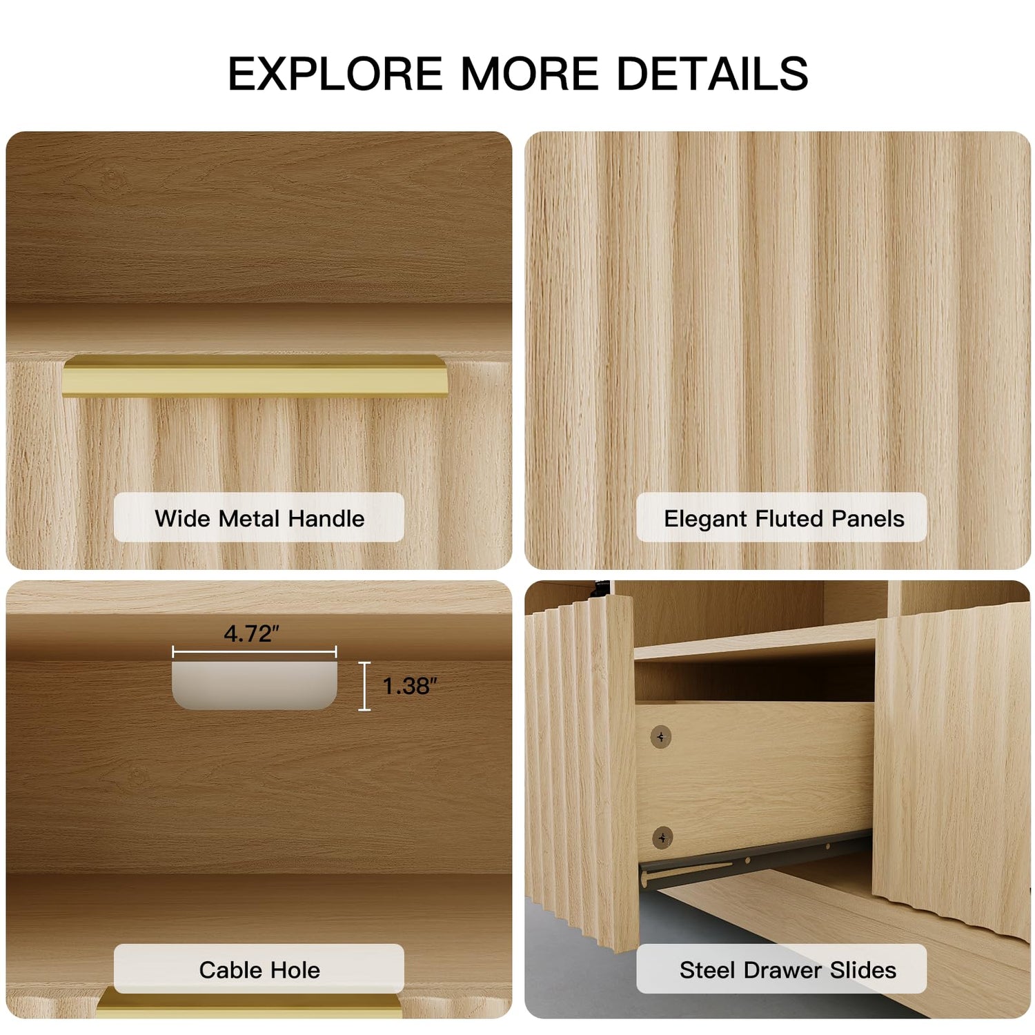 - 【Versatile for Any Space】Featuring a sleek fluted panel design, the TV stands for living room add a modern touch. Whether placed in the living room, bedroom, or entertainment area, its blends with different décors for a stylish yet functional finish.
