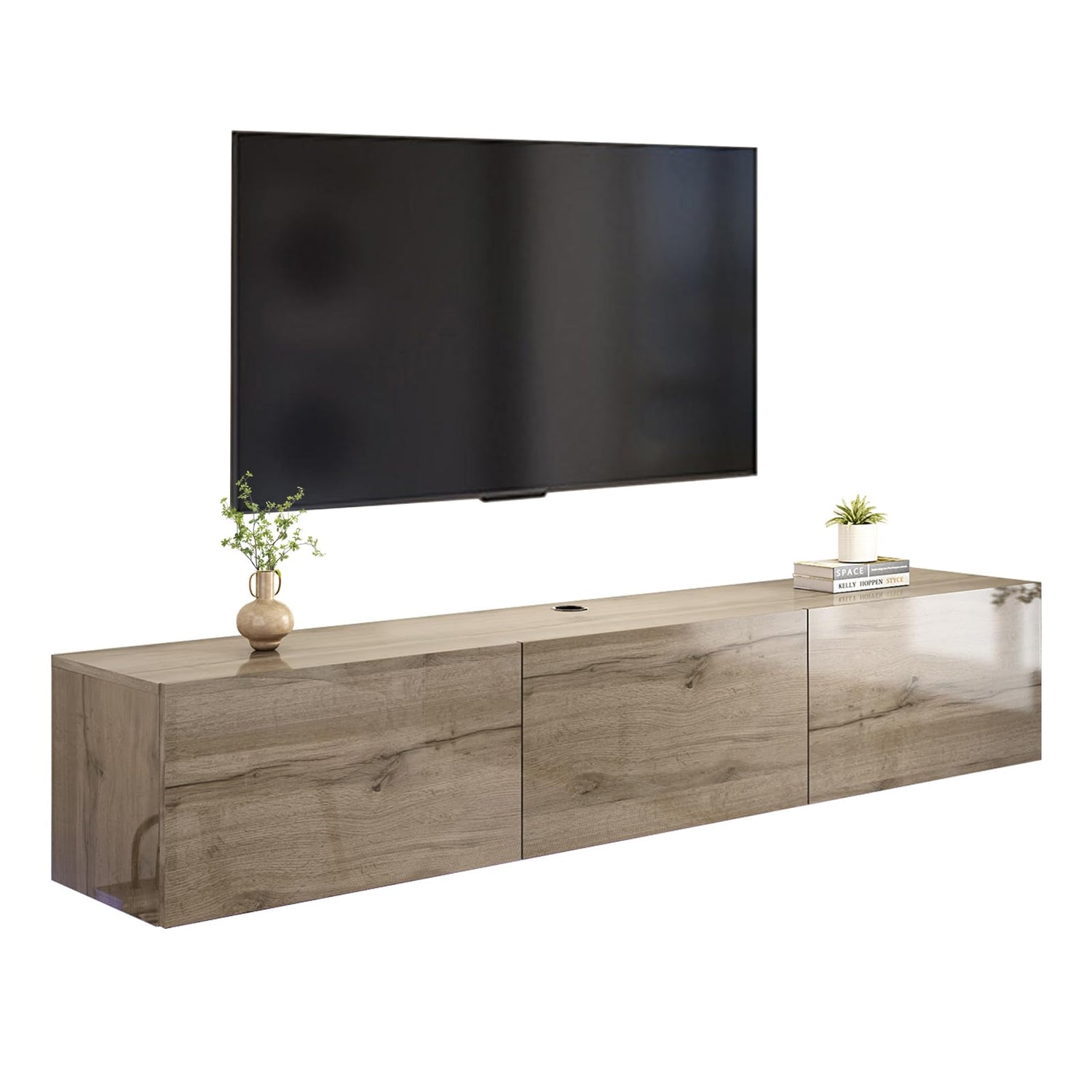 - 【Minimalist Style】Modern TV stand features a floating design. The high gloss farmhouse wood grain finish is natural and unique. Simple charm adds a sophisticated touch to any room and complements a variety of decor styles