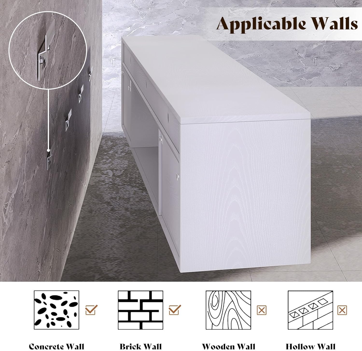 - Applicable Walls: Wall mounted TV cabinet is suitable for concrete walls and brick walls (not suitable for wooden walls or hollow walls). Maximum load capacity is 200lbs. Two people can complete install within 90 minutes